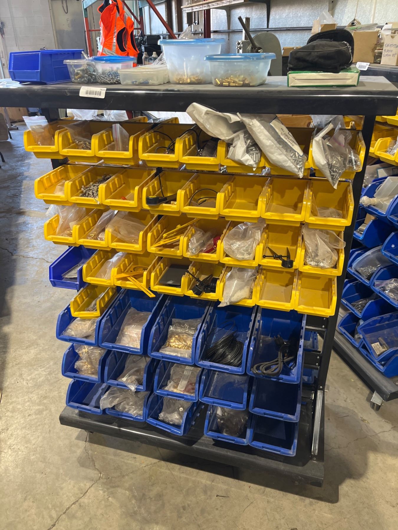Lot 7611 Mobile Rolling Steel Shelf With Plastic Bins Containing Assorted Fasteners And Hardware