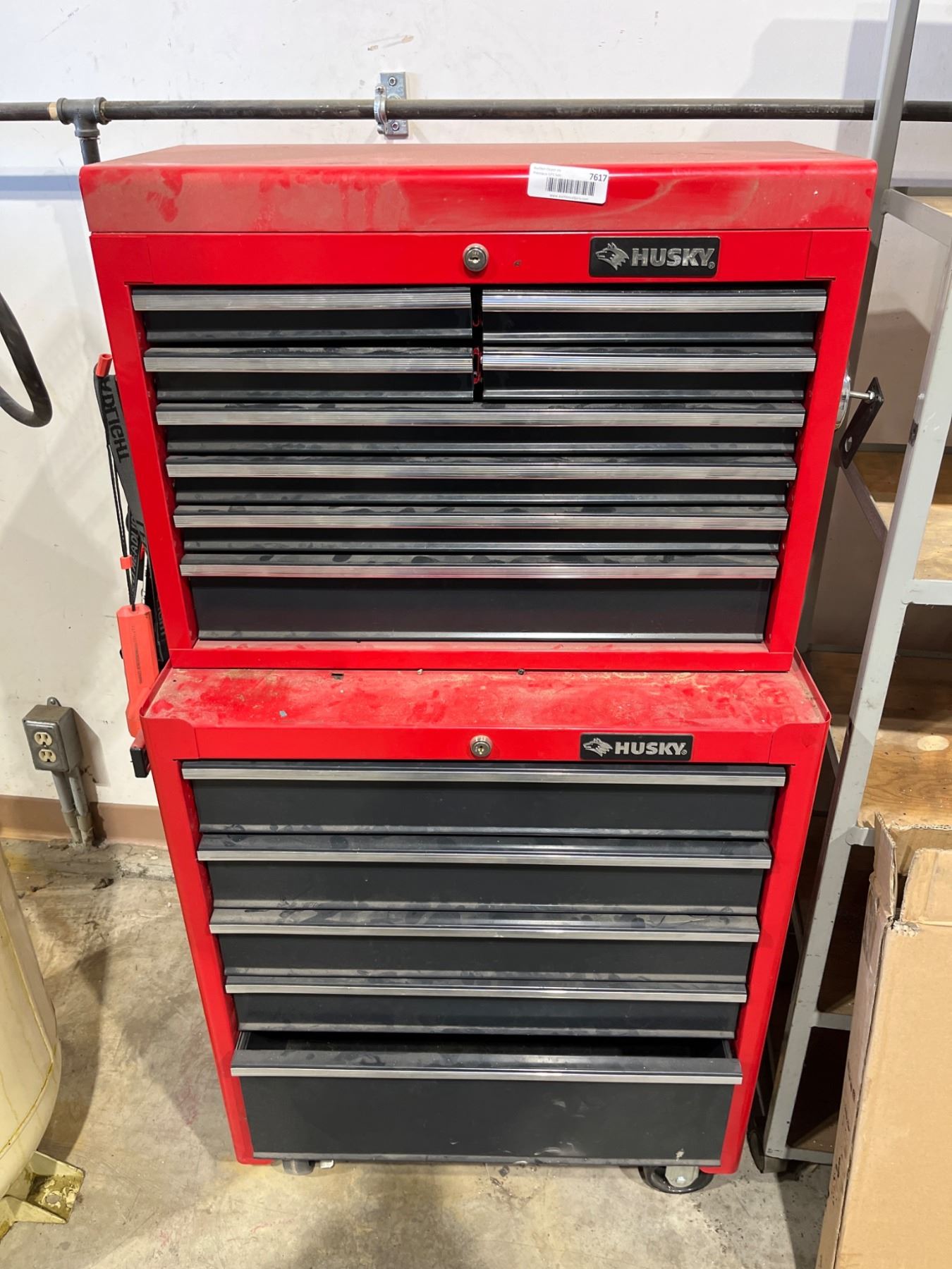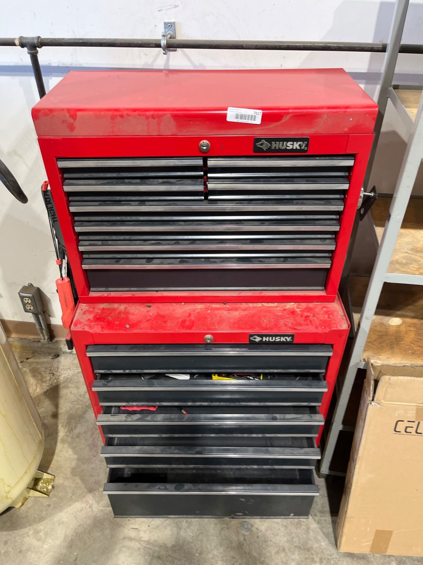 Lot 7617 Husky 2-Part Red Tool Chest With Multiple Drawers on Casters