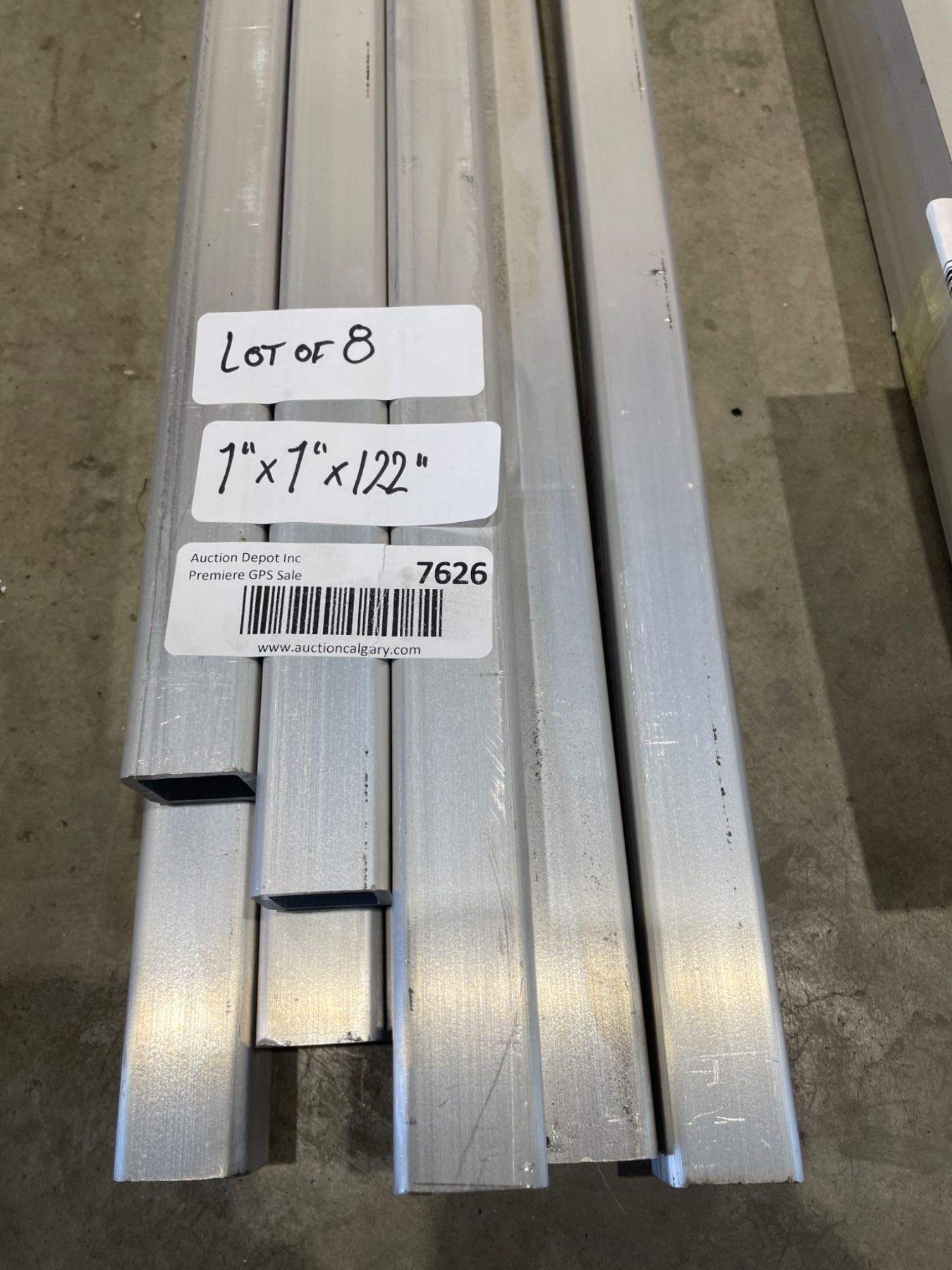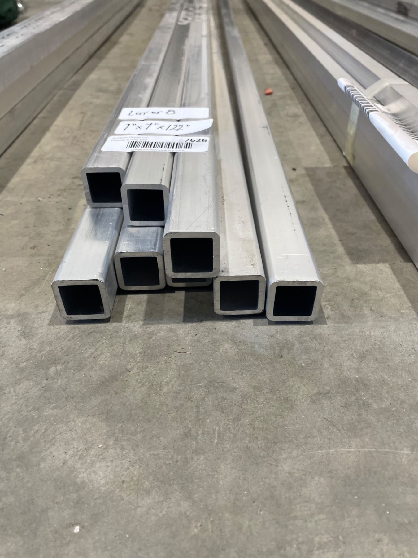 Lot 7626 Lot of 8 Aluminum Square Tubing, 1in x 1in x Assorted LengthsÂ