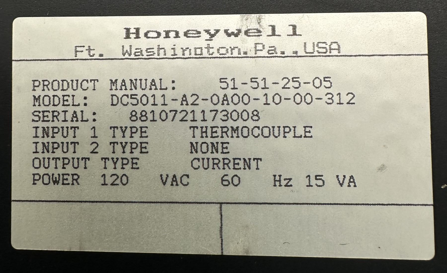 Honeywell #51-51-25-05 Model DC5011-A2-0A00-10-00-312 Temperature Controller