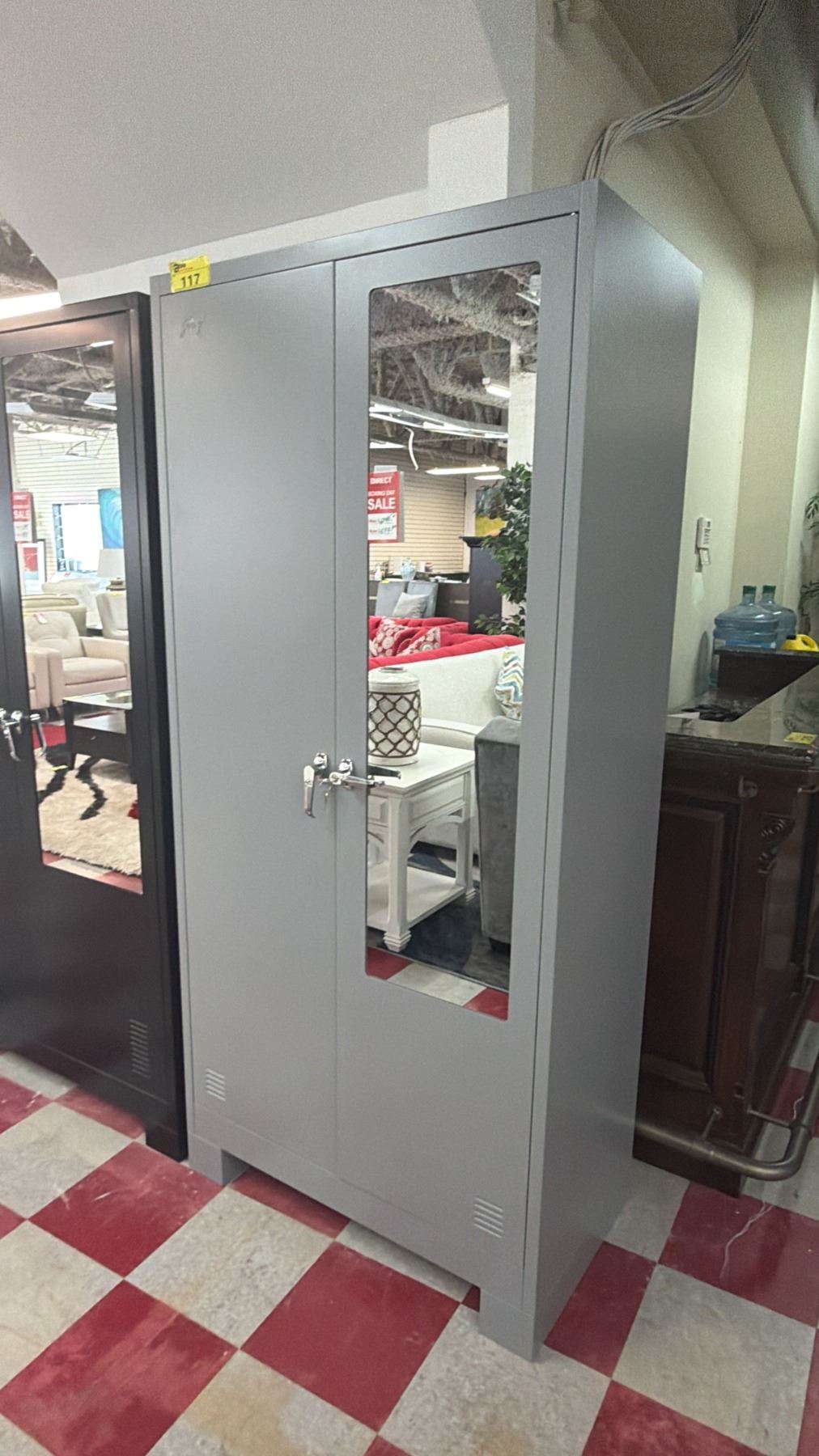Lot 117 MODERN METAL WARDROBE WITH MIRROR