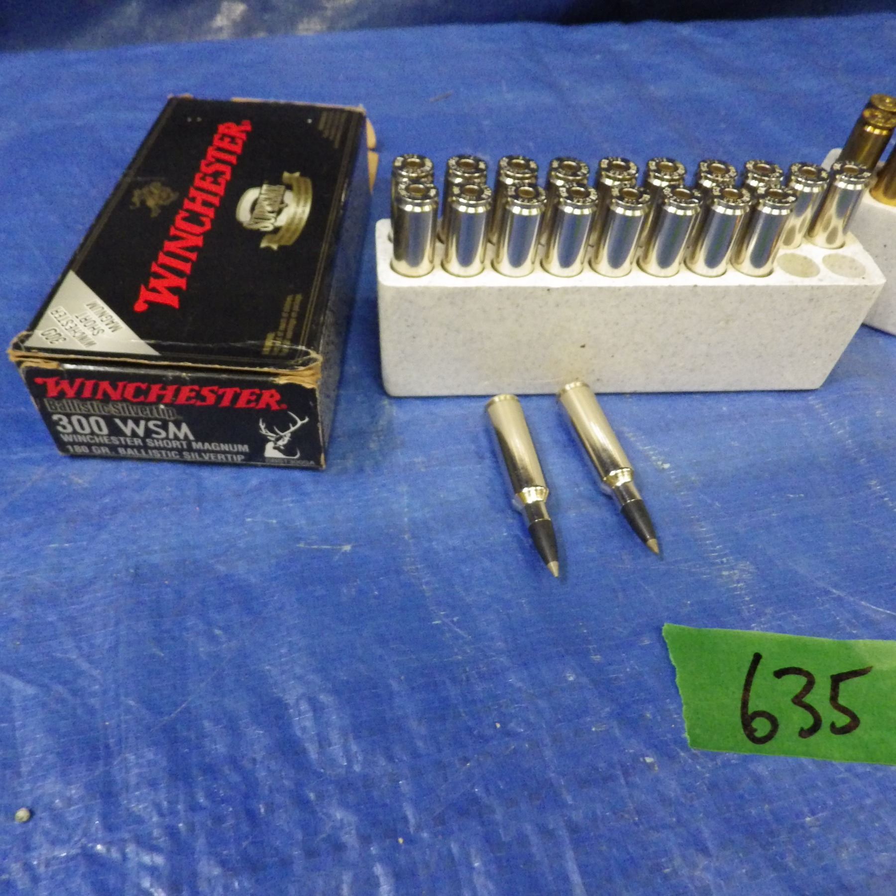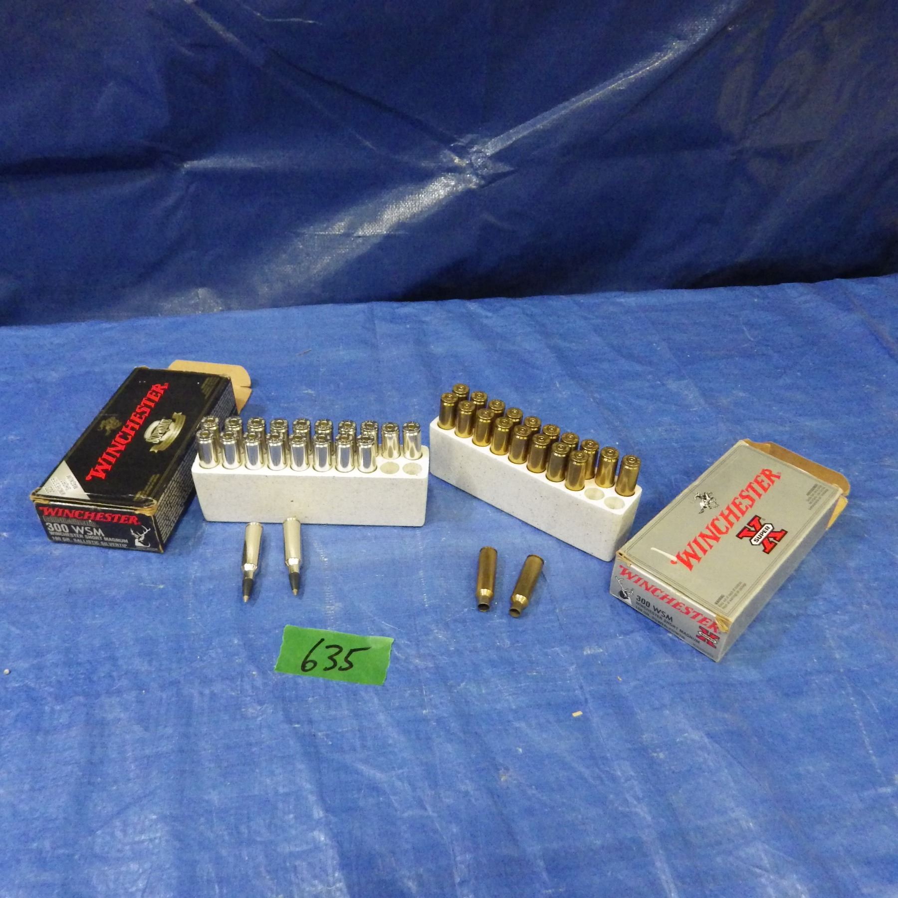 Lot 635 Live ammunition and brass 308 WSM