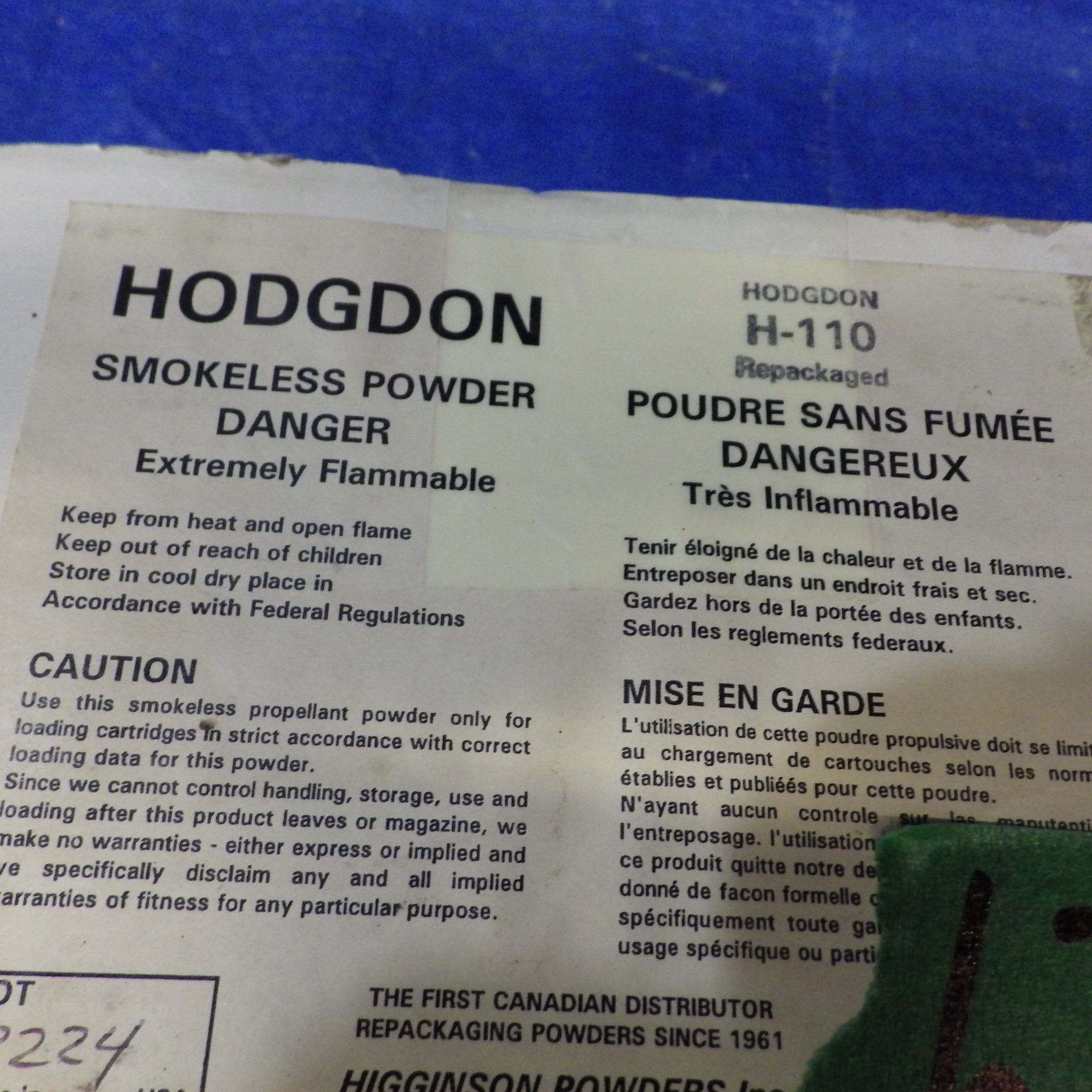 Lot 637 Hodgdon H - 110 powder repackaged - No shipping local pick up only