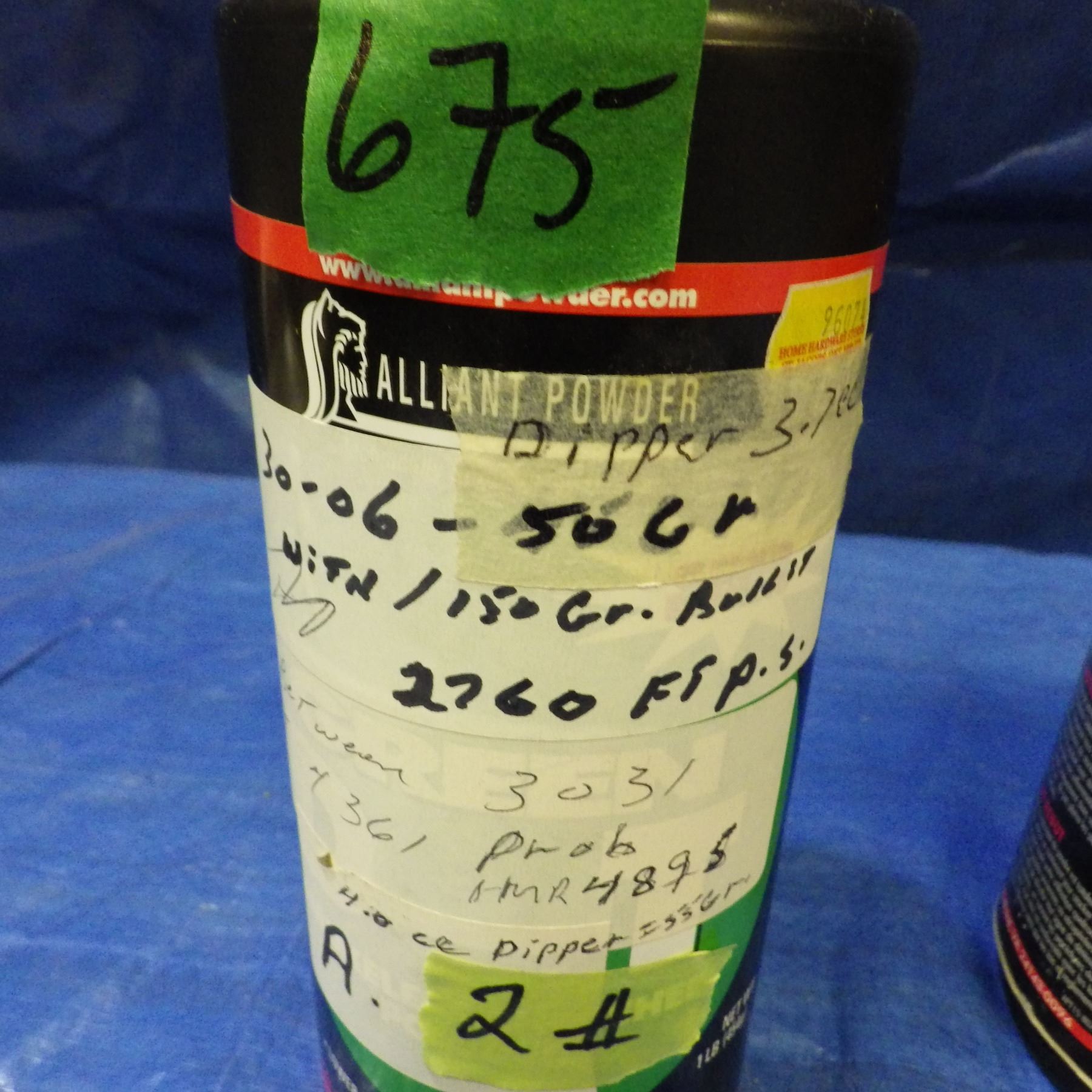 Lot 675 CAN OF POWDER from an estate. Total weight noted is for container and contents. - No shipping local
