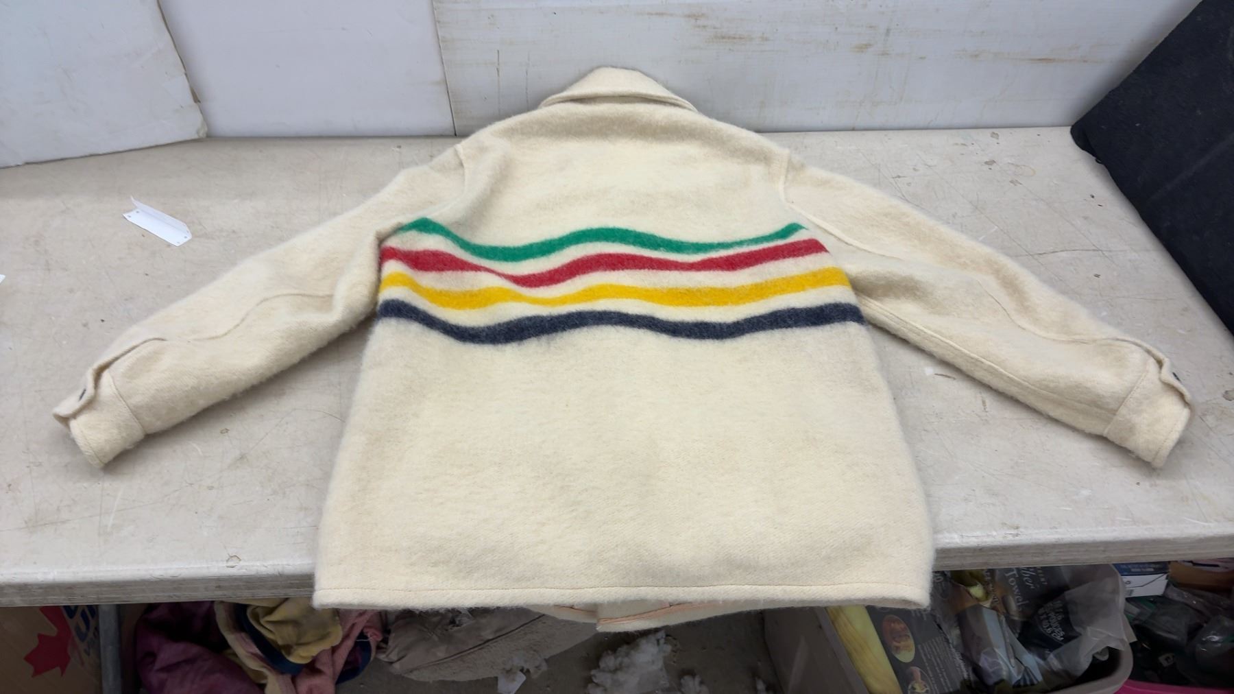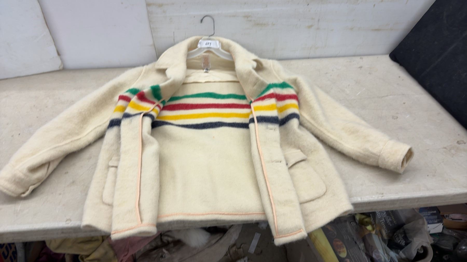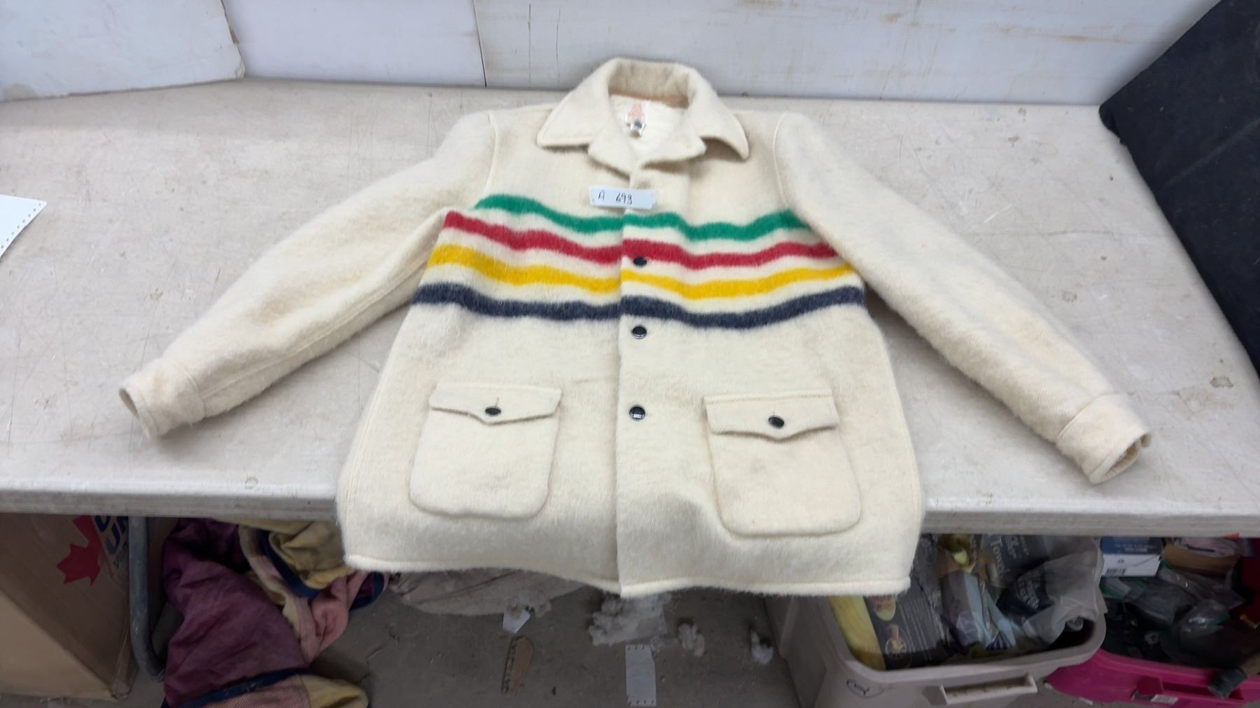 Lot 693 Hudson's Bay Company Pure Virgin Wool Blanket Coat with Multistripe Pattern, No Size Listed
