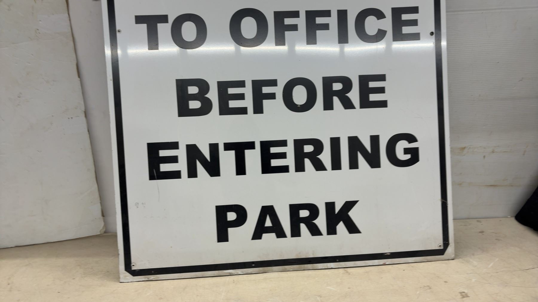 Lot 696 Alucobest Aluminum Composite Panel "Please Report to Office Before Entering Park" Sign 48 x 36"