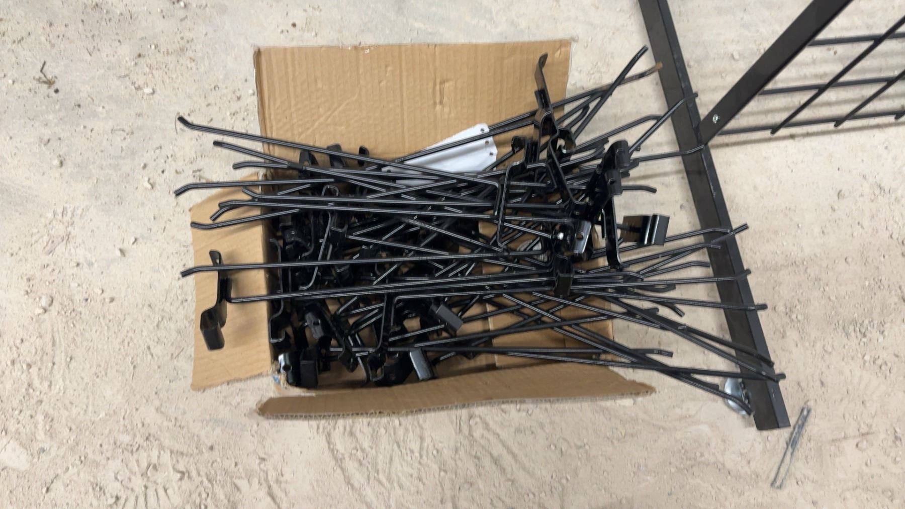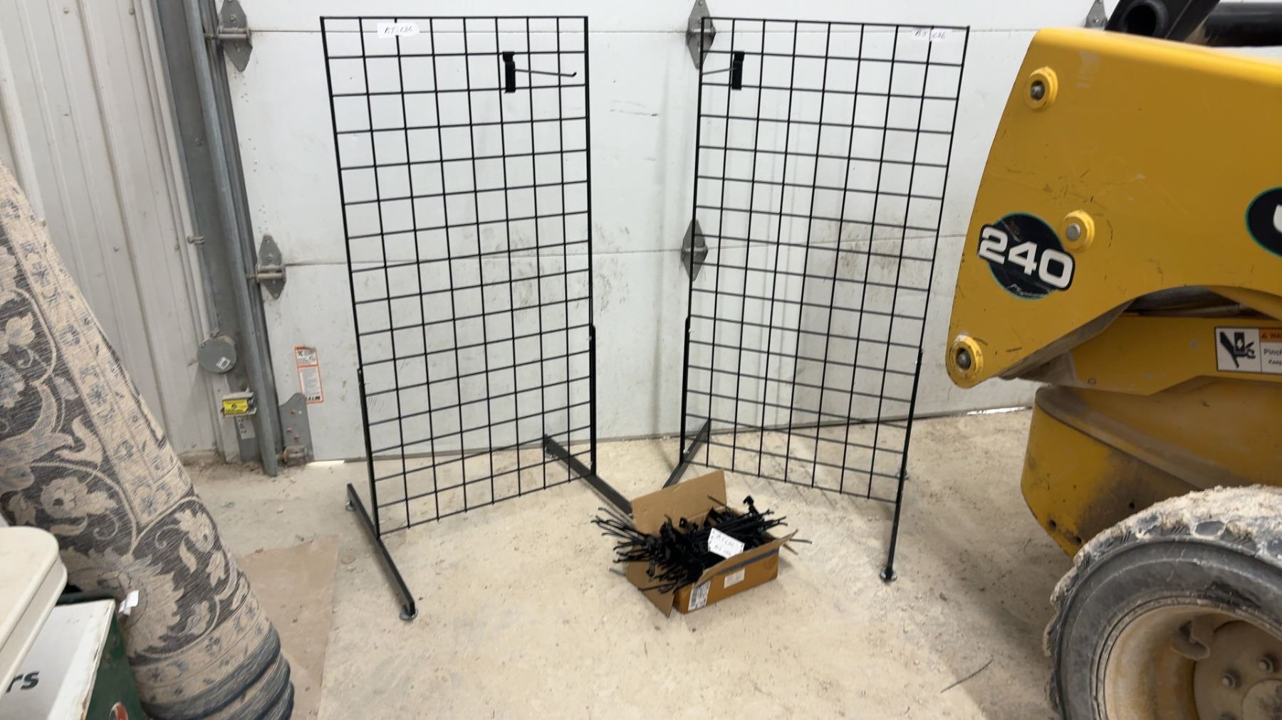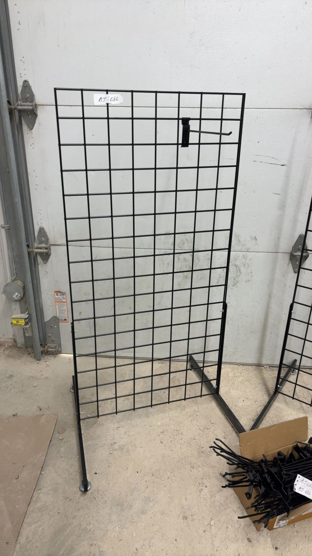 Lot 686 Two Black Metal Gridwall Display Panels with T-Base Stands and Display Hooks 51 x 24 x 24