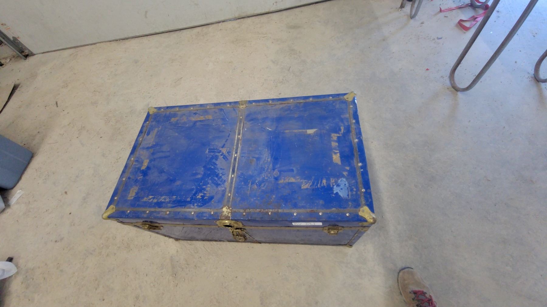Lot 631 Blue Metal Steamer Trunk with Brass-Tone Hardware and Side handles19 X 35 x 20"