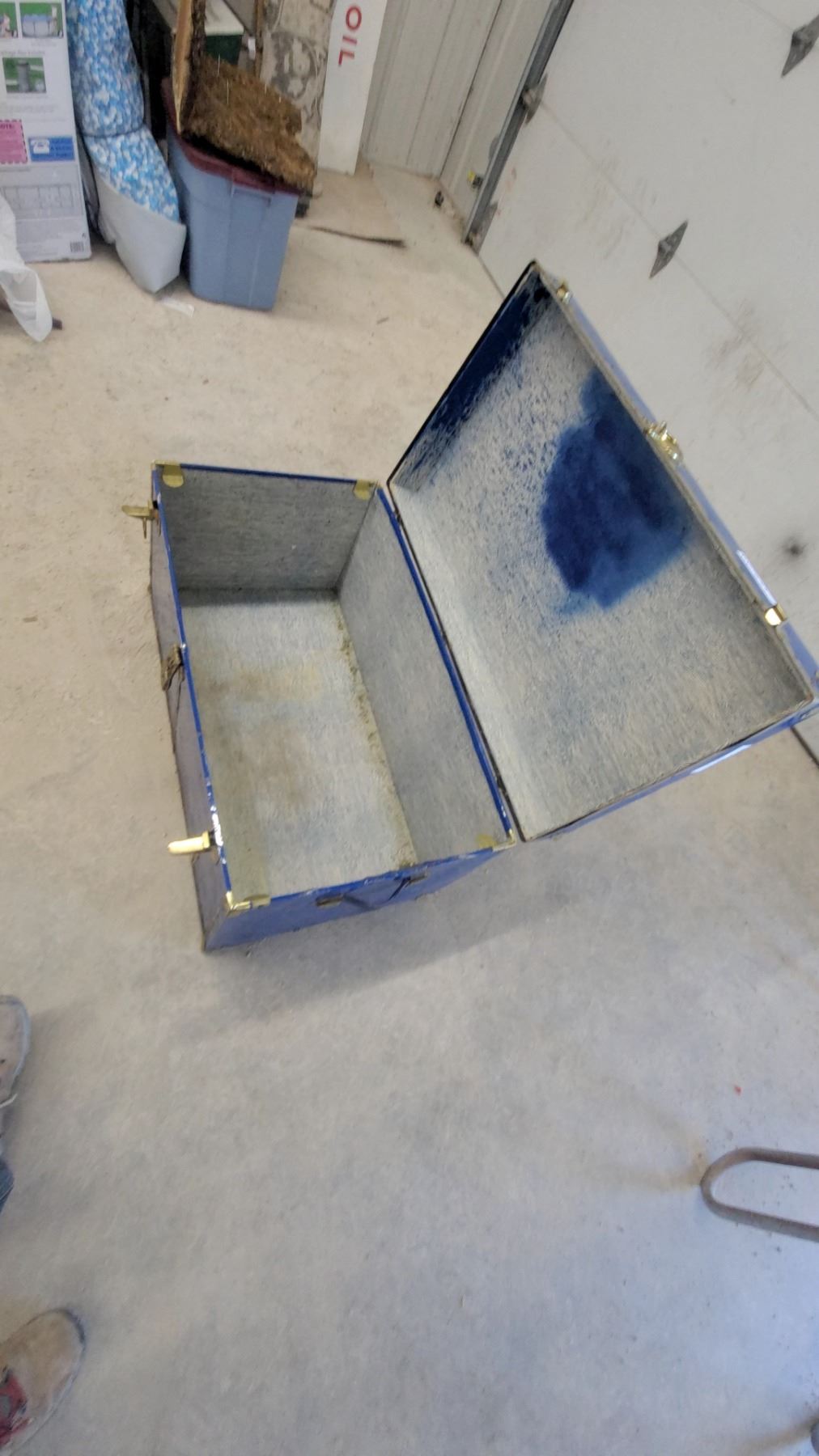 Blue Metal Steamer Trunk with Brass-Tone Hardware and Side handles19 X 35 x 20"