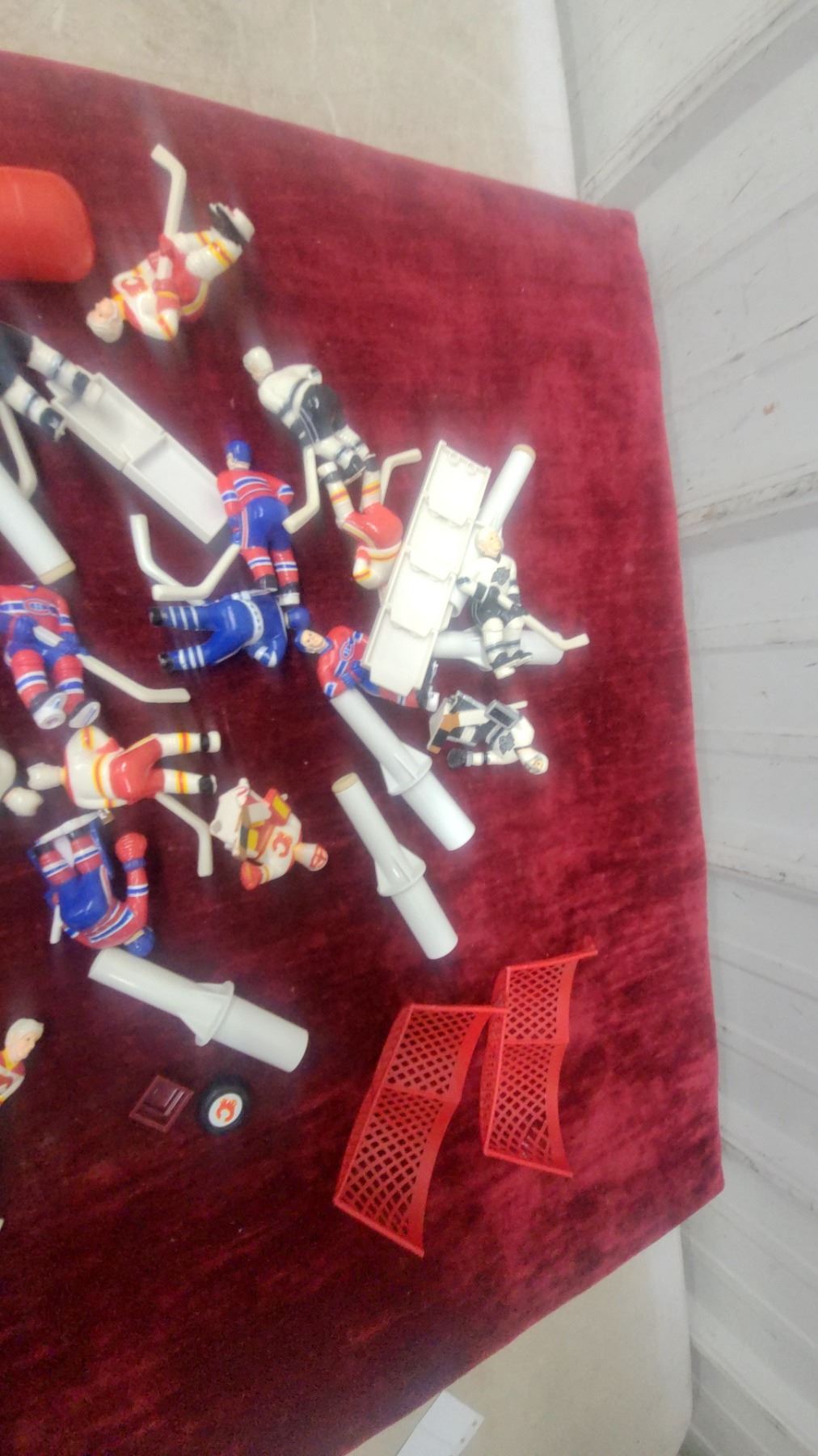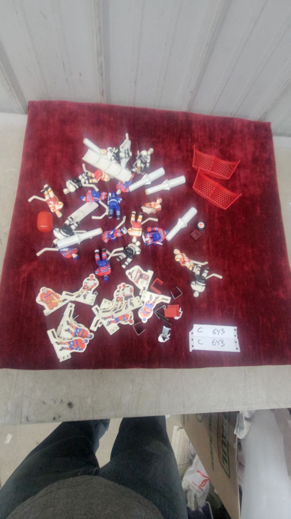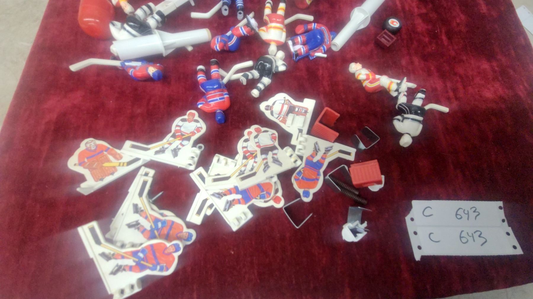 Lot 643 Vintage Table Hockey Game Player Figures, Goals, Pucks, and More