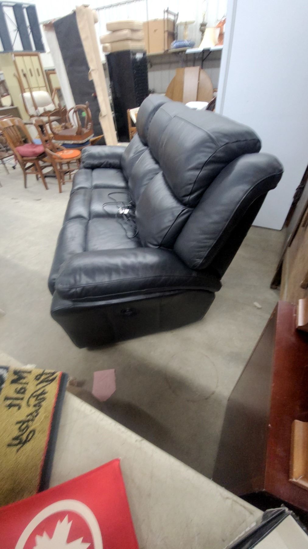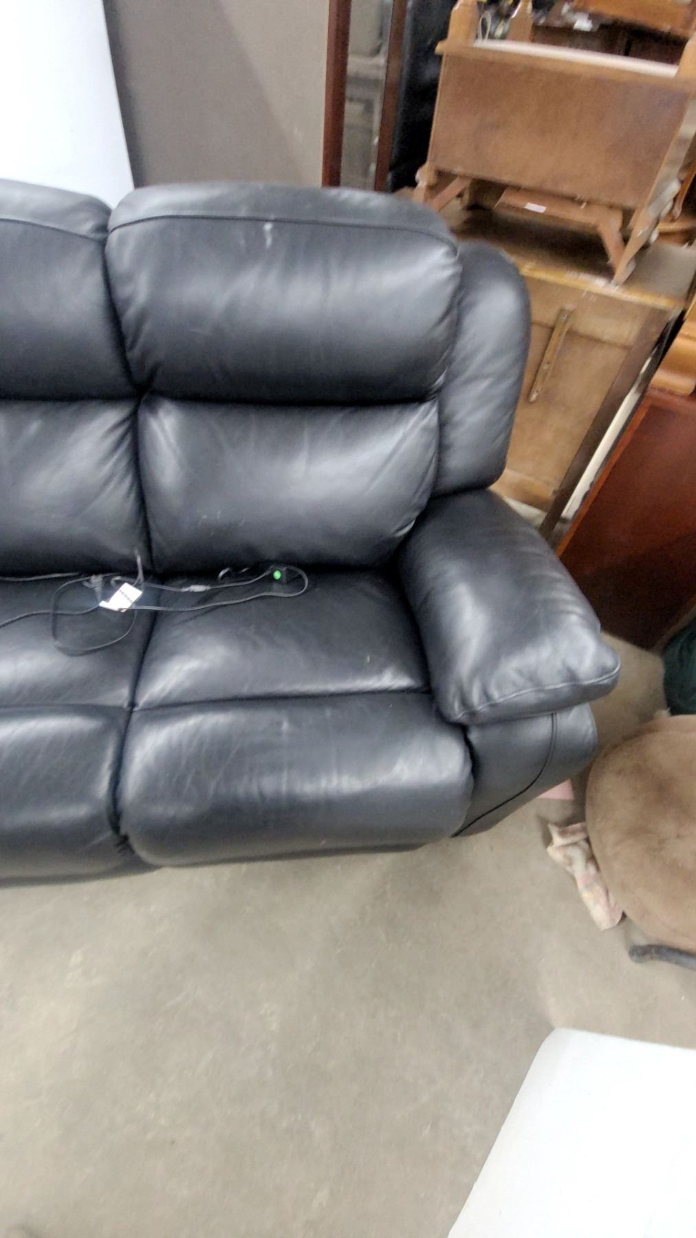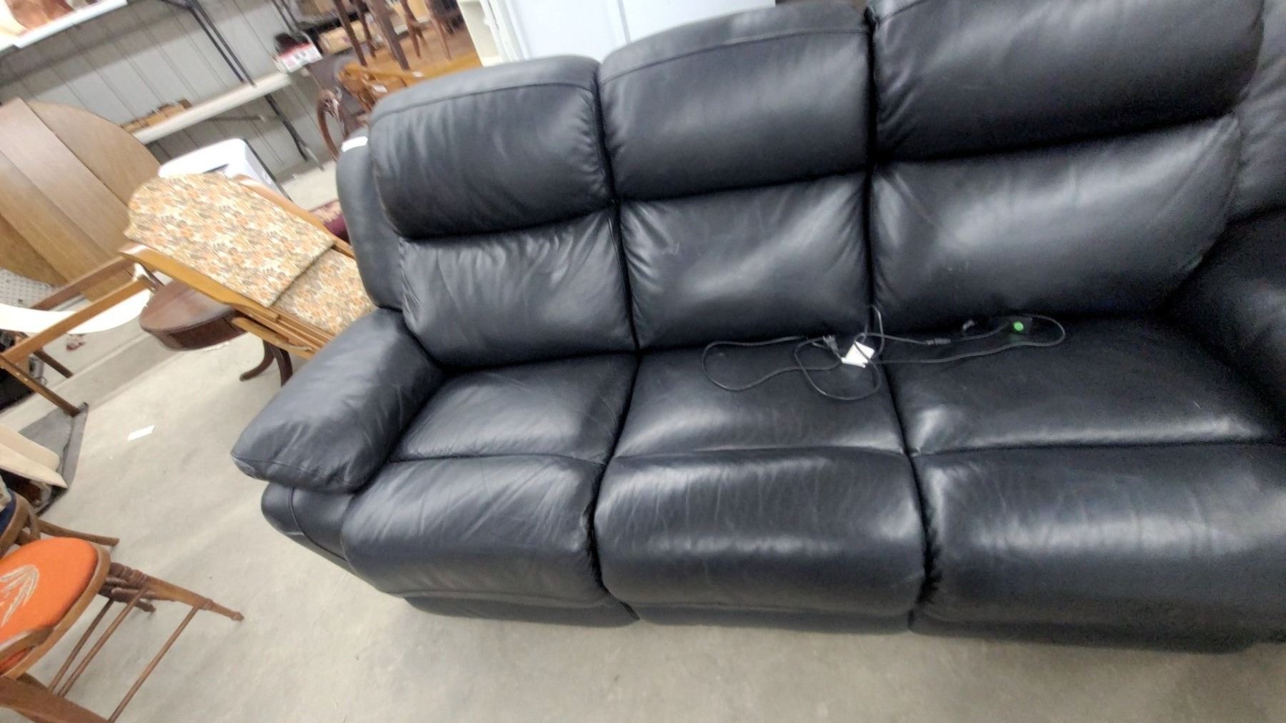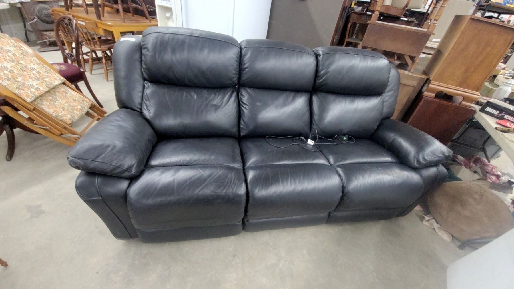 Lot 16 Black Leather Leather Style 3-seater Power Recliner Sofa with Electric Controls 86" Wide