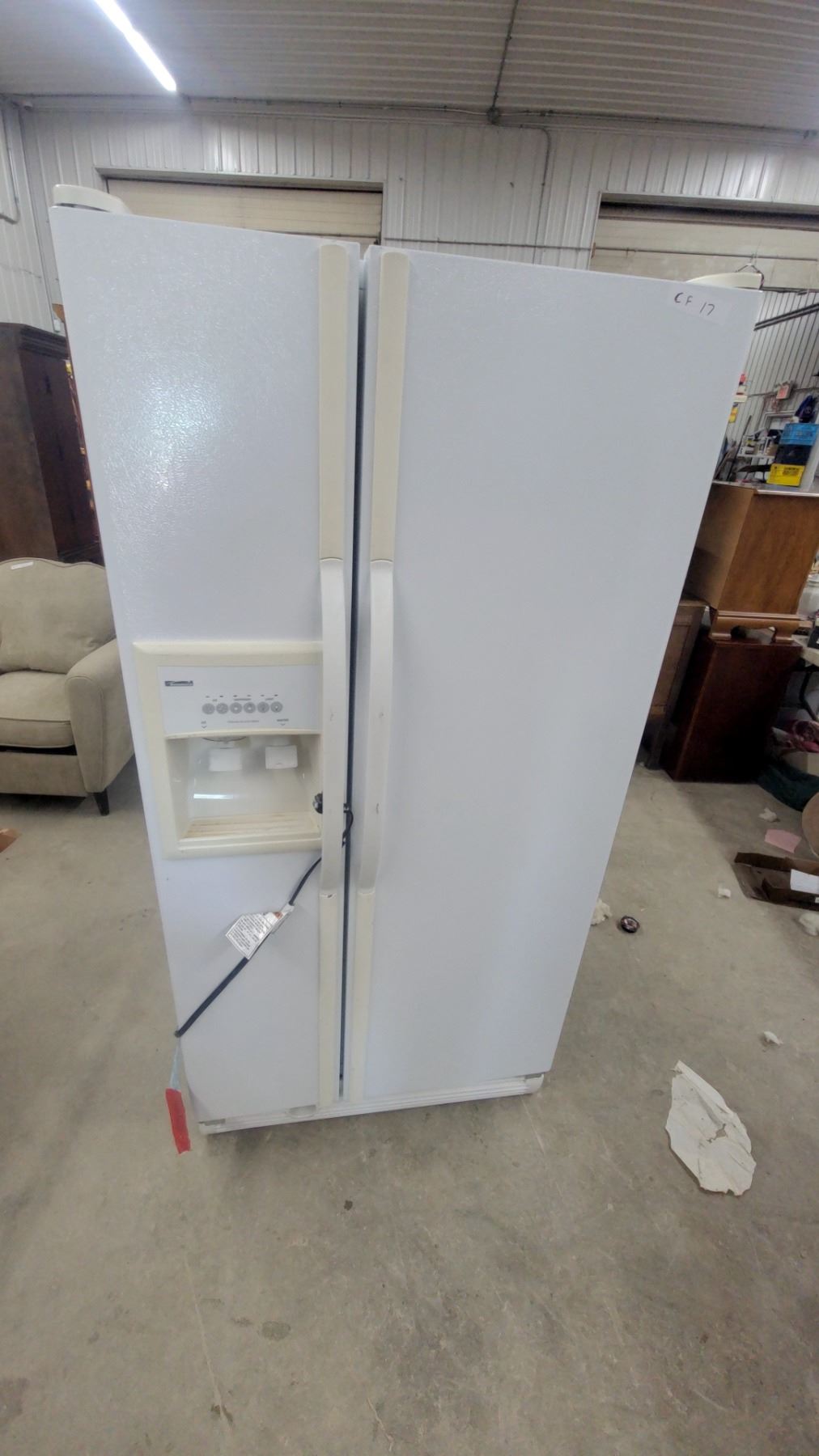 Lot 17 Kenmore Side-By-Side Refrigerator with Ice and Water Dispenser, White 66 x 33 x 30"