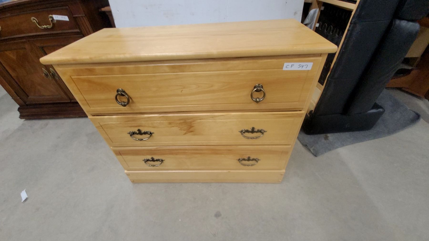 Lot 547 Light Wood 3-drawer Chest of Drawers with Decorative Metal Ring and Bail Pull handles30 X 36 x 16"