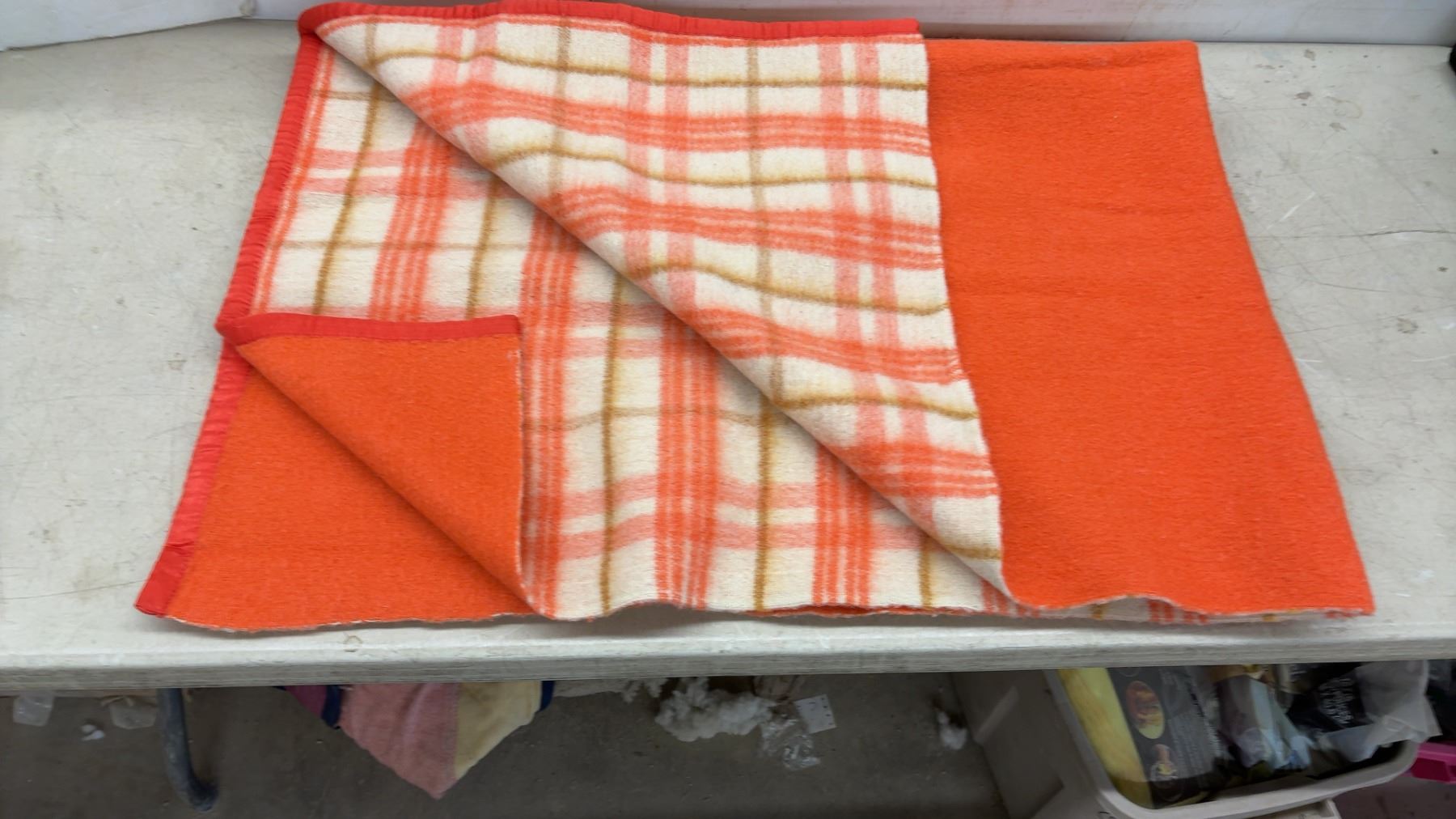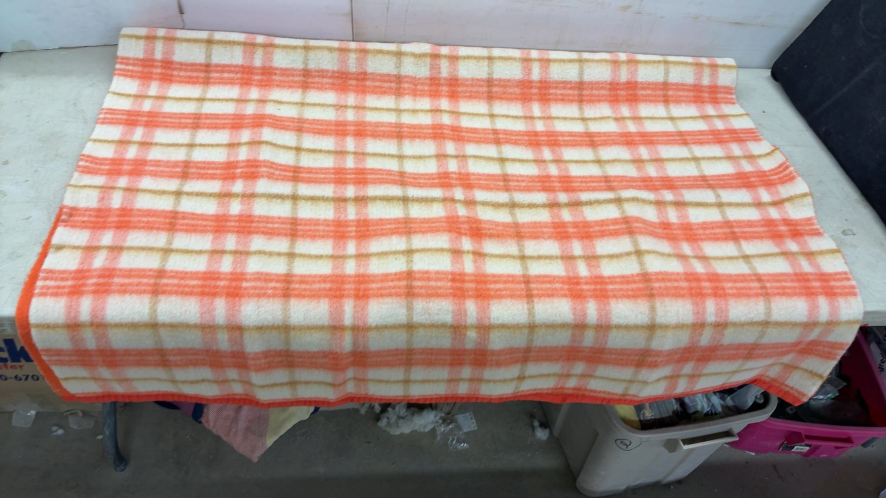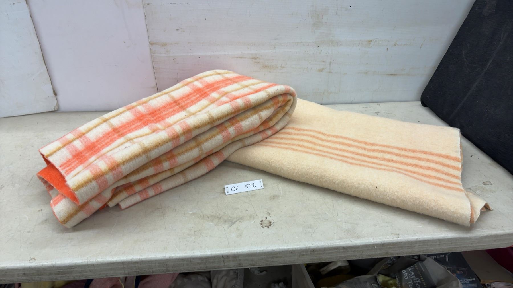 Lot 592 2 Vintage Wool Blankets Orange/Cream Striped