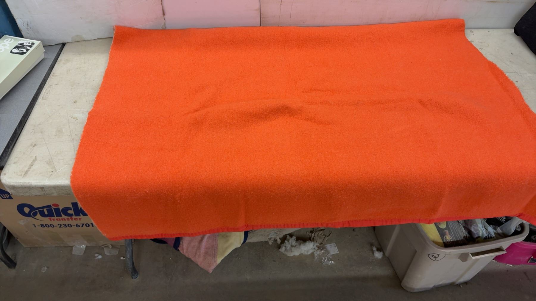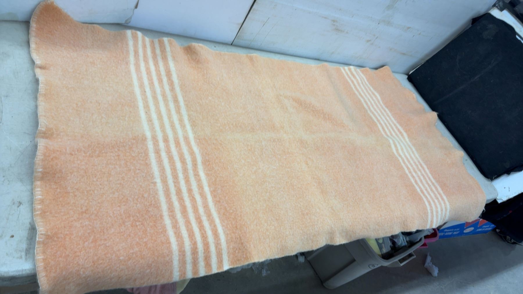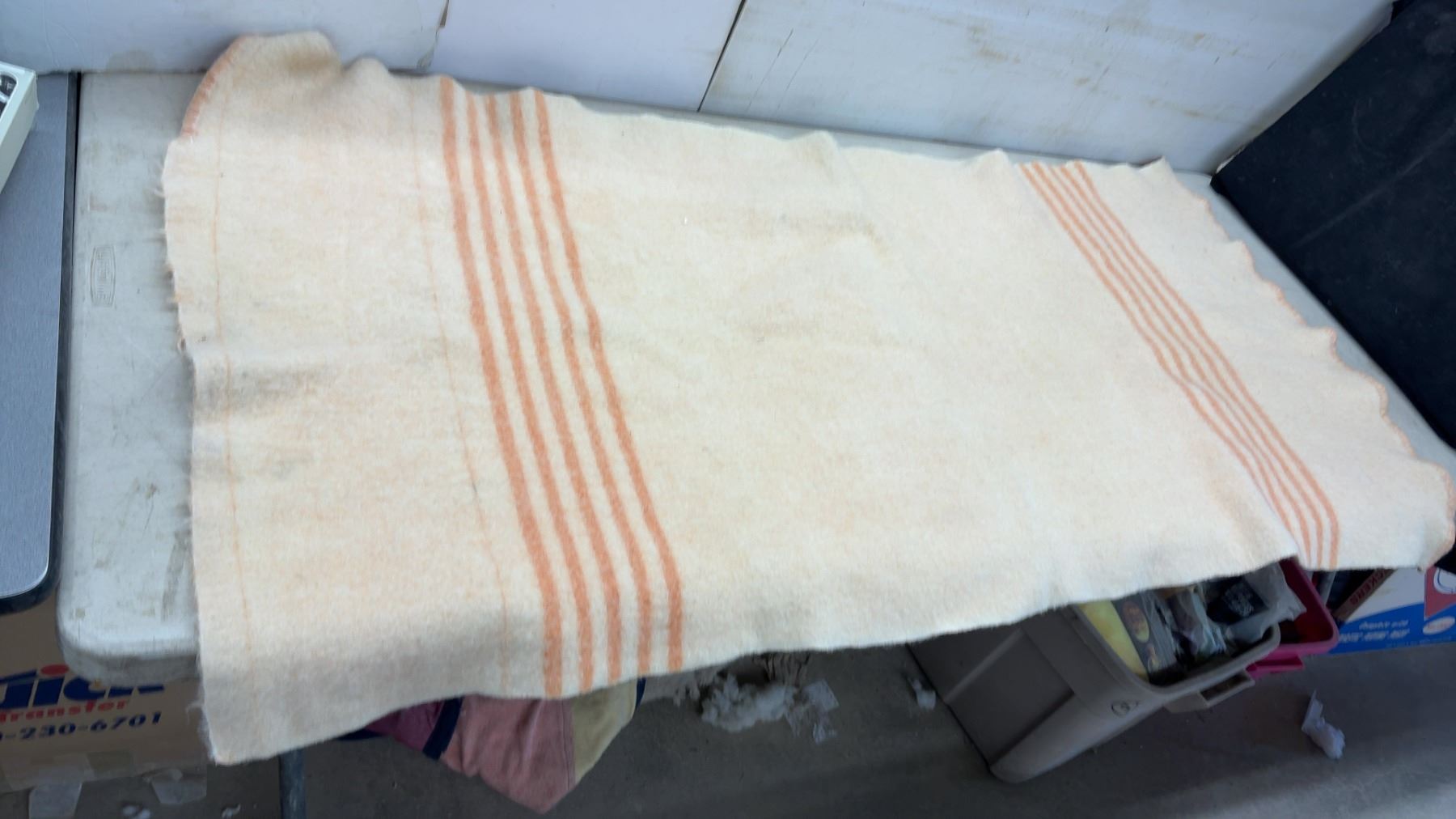 Lot 592 2 Vintage Wool Blankets Orange/Cream Striped