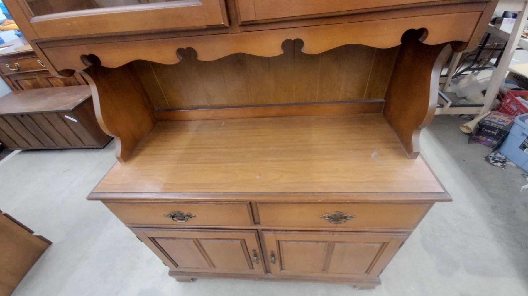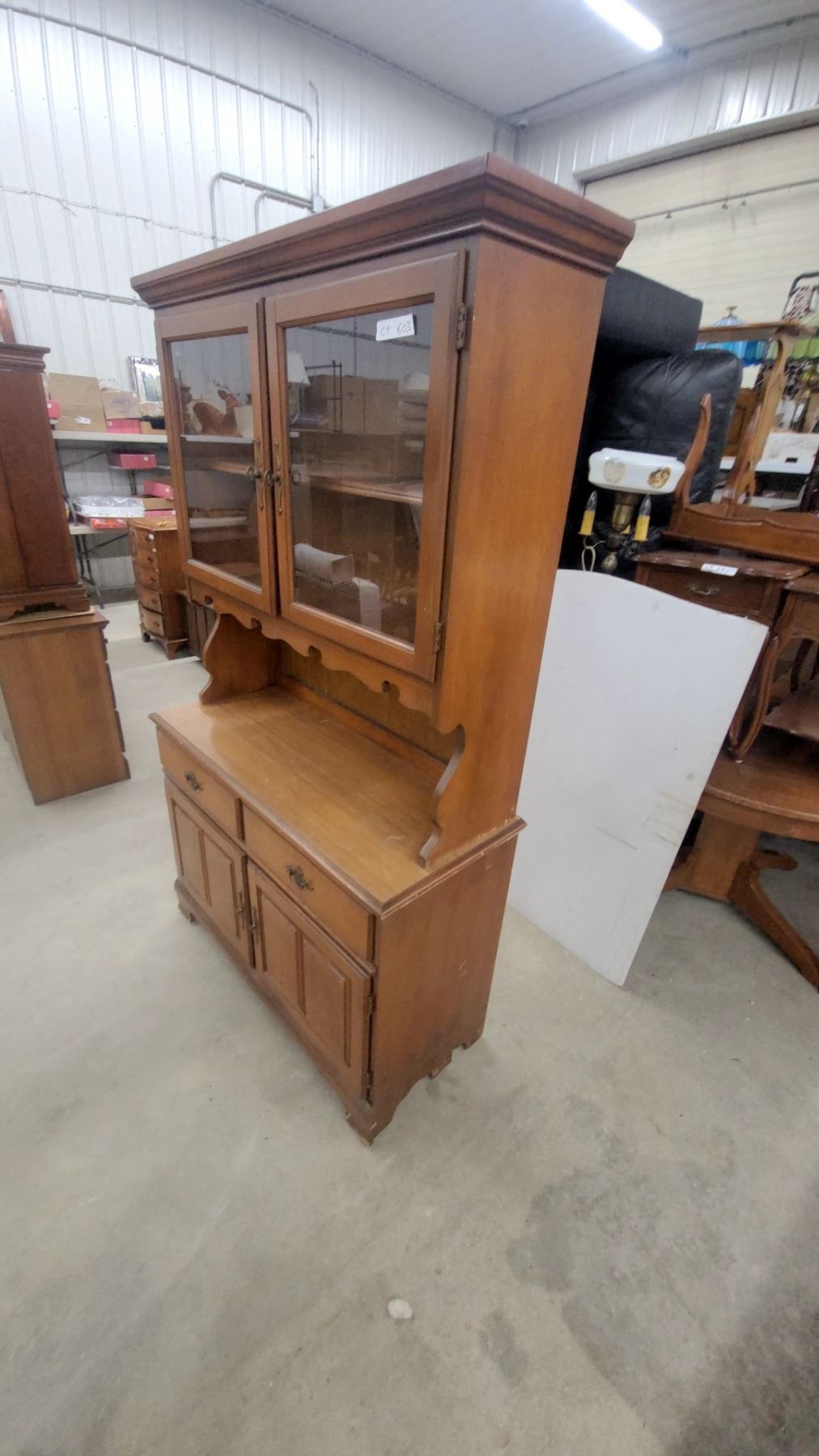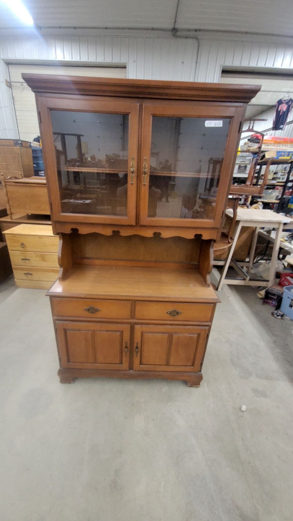 Lot 603 Maple Colonial Style China Hutch with Glass Doors, 2 Drawers & Lower Cabinet Storage 73 x 18 x 42"
