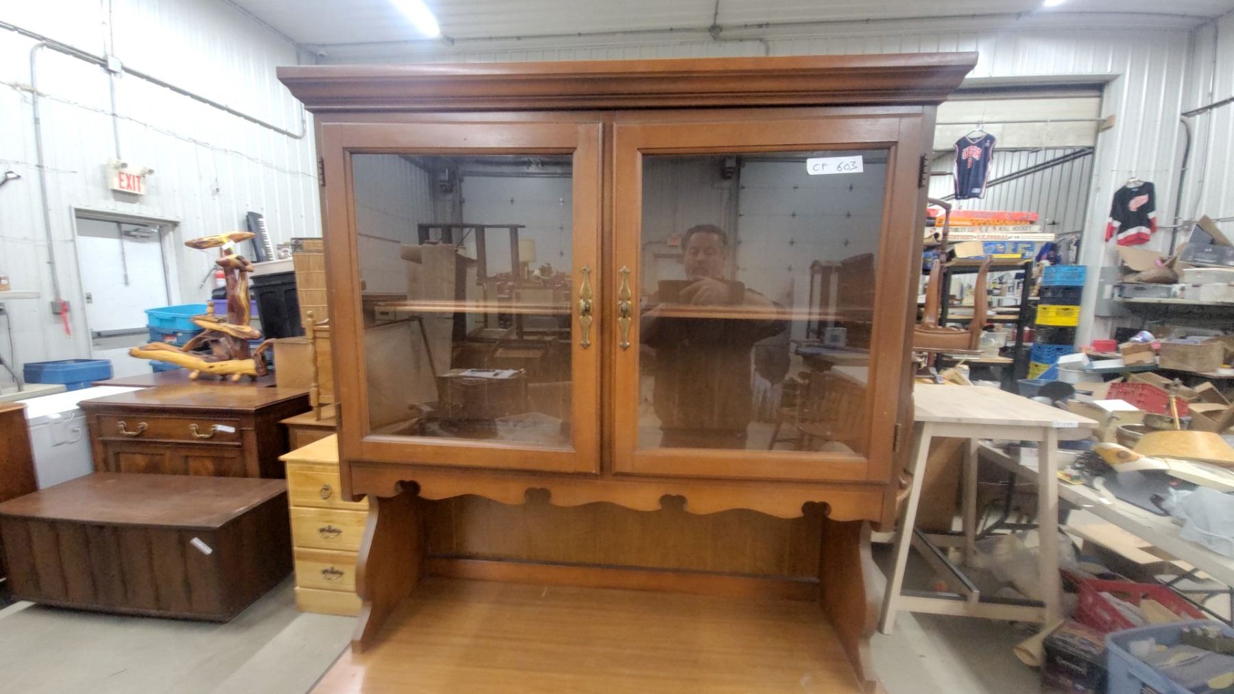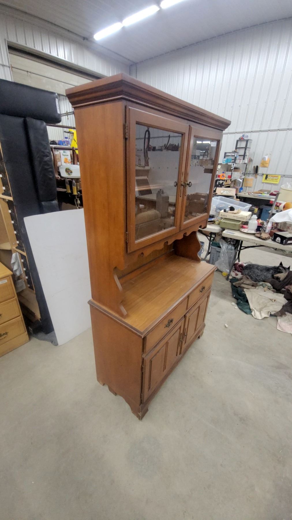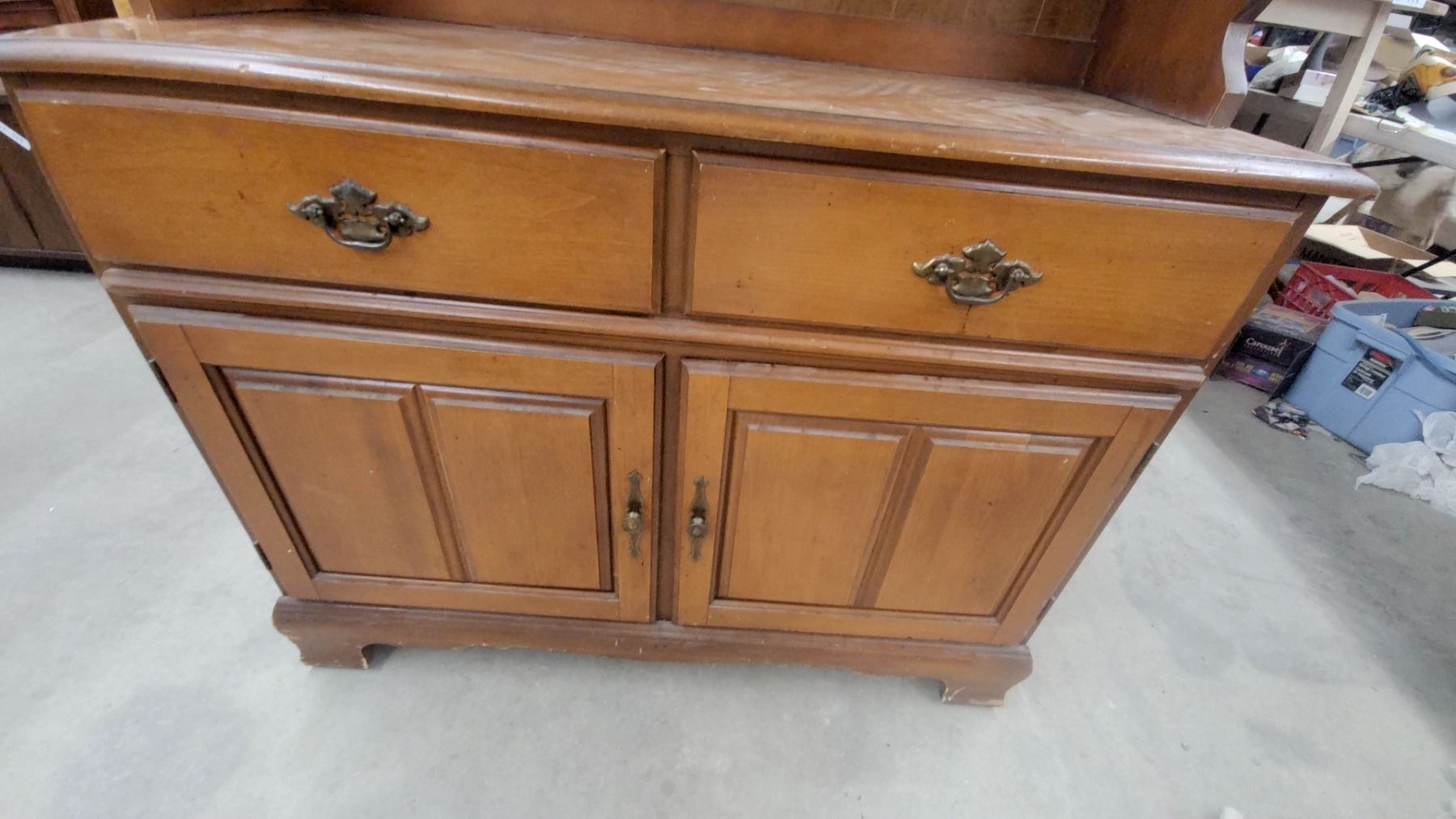 Lot 603 Maple Colonial Style China Hutch with Glass Doors, 2 Drawers & Lower Cabinet Storage 73 x 18 x 42"