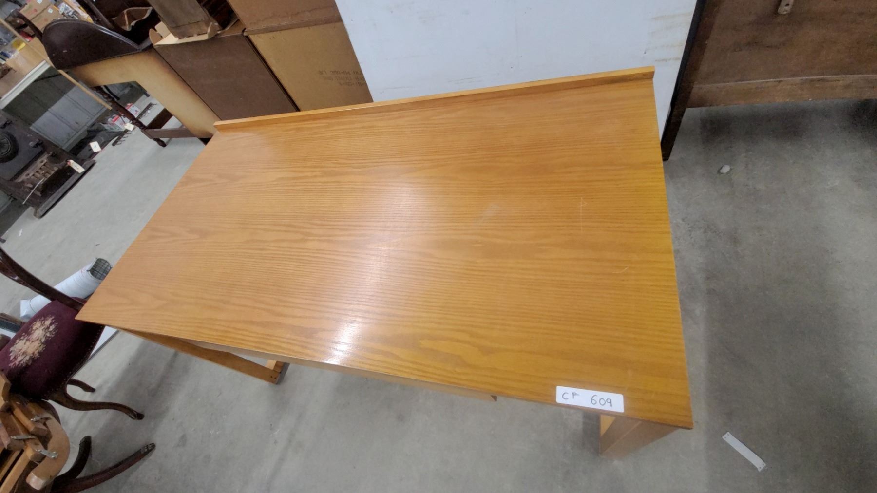 Lot 609 Oak Rectangular Desk with Sled Base Legs and Single Drawer 30 x 55 x 30"