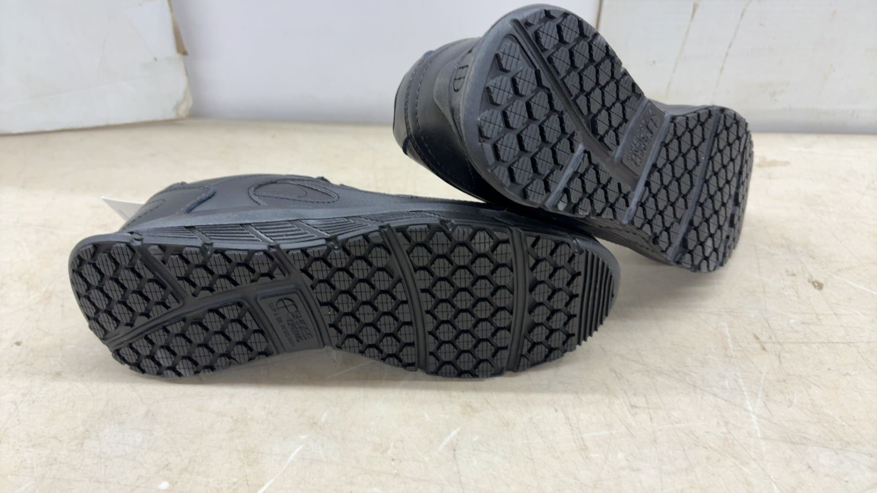 Lot 652 Shoes for Crews Black Slip & Oil Resistant Work Shoes, Lace-Up, Blue Insole Size 9