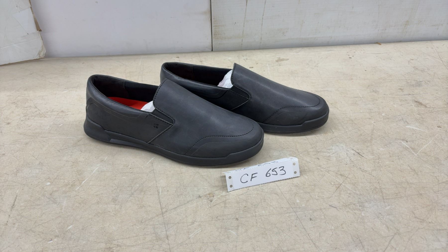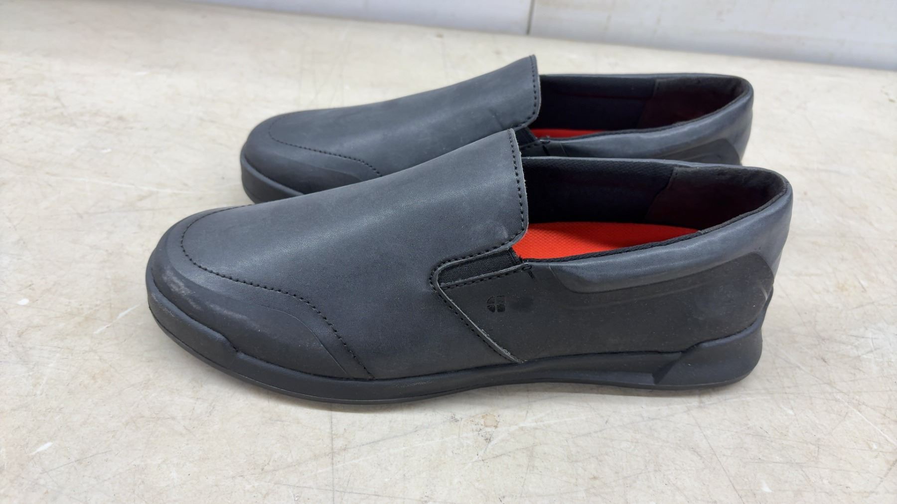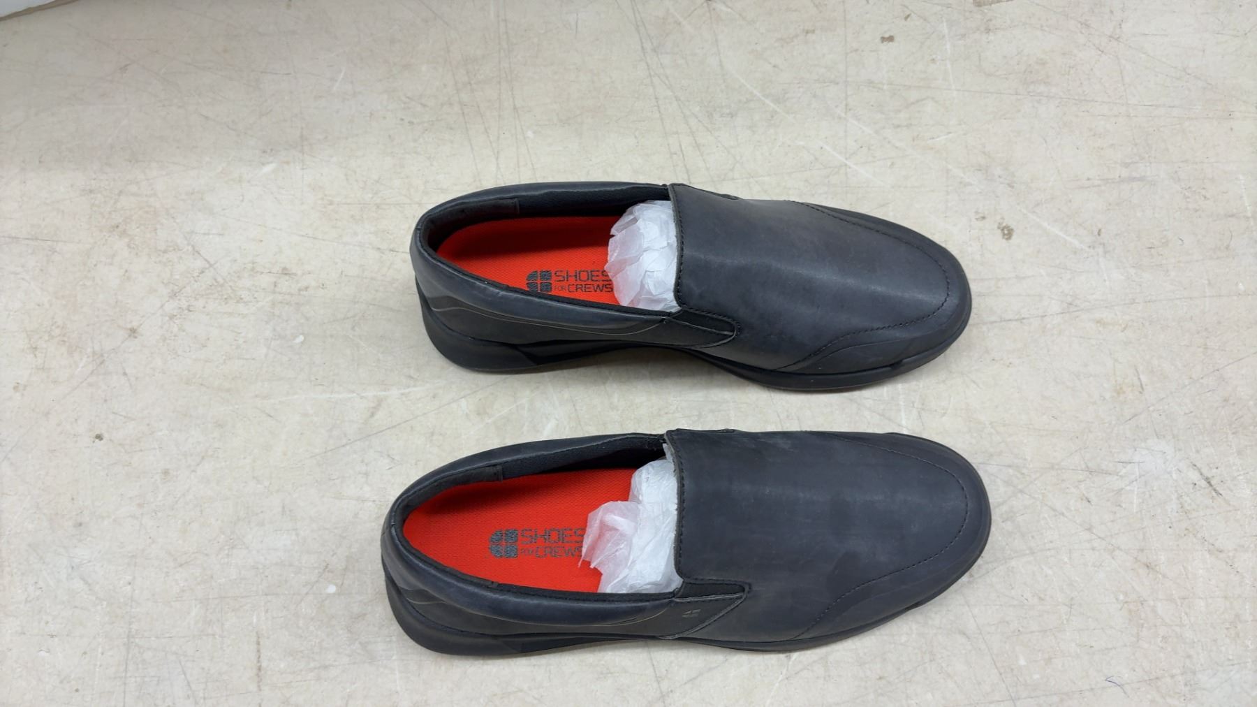 Lot 653 New Shoes for Crews Black Slip-On Work Shoes, Slip & Oil Resistant Soles, Red Insoles Size 9