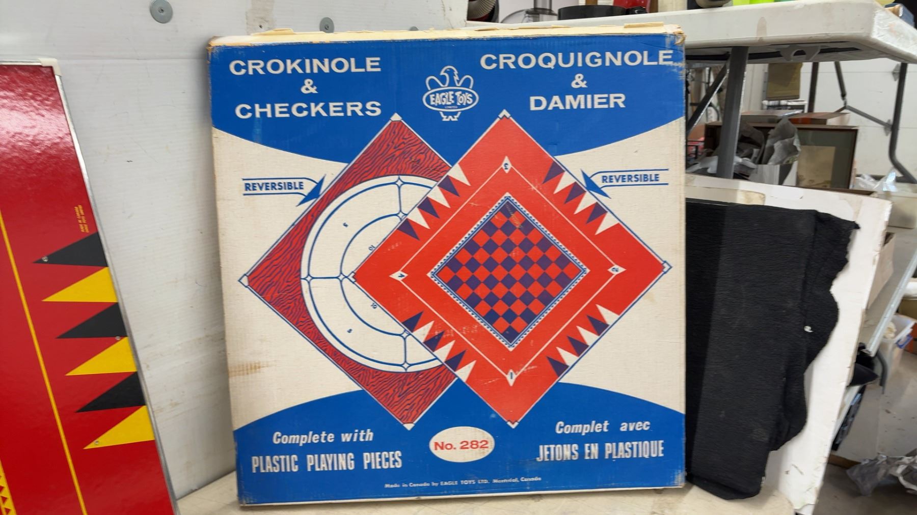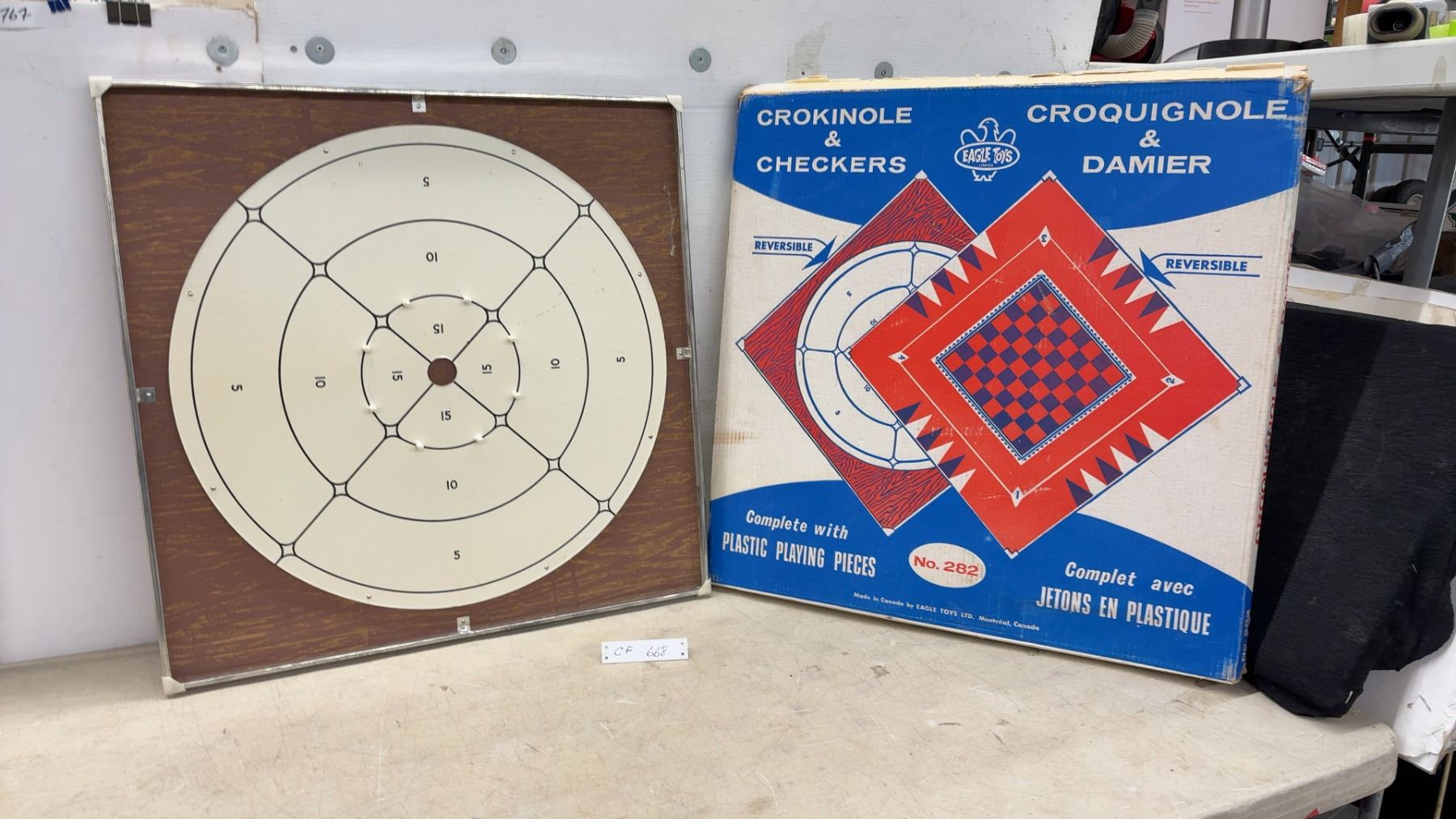 Lot 668 Eagle Toys No. 282 Crokinole & Checkers Reversible Game Board with Original Box, No Playing Pieces