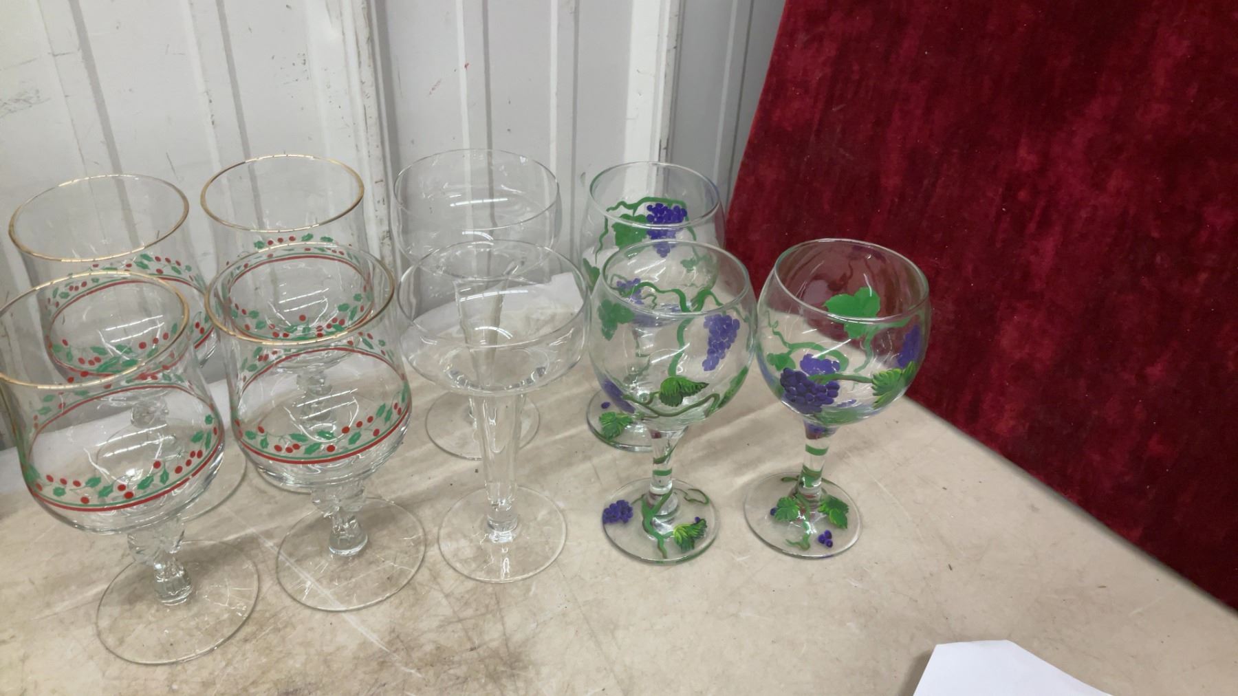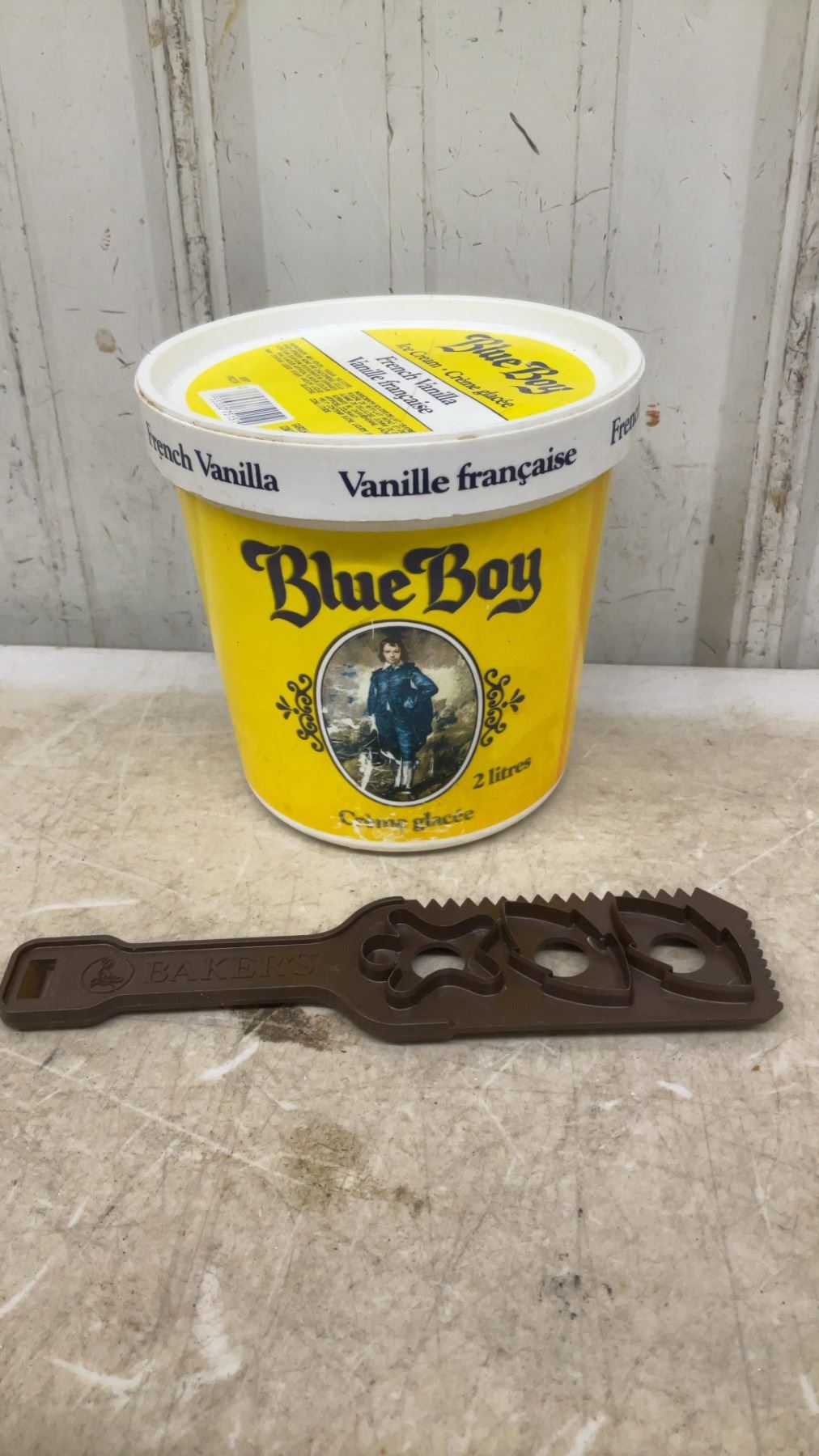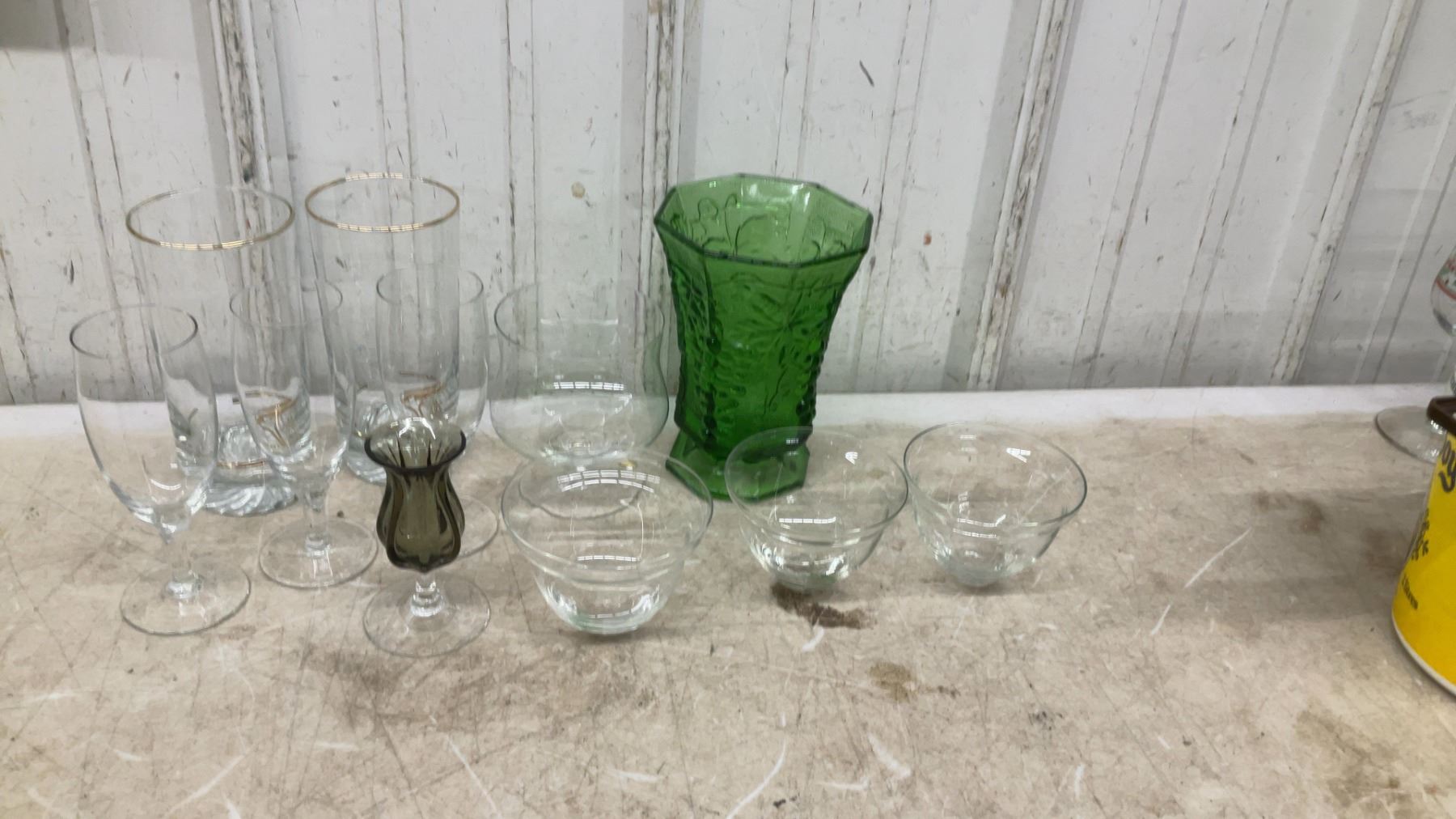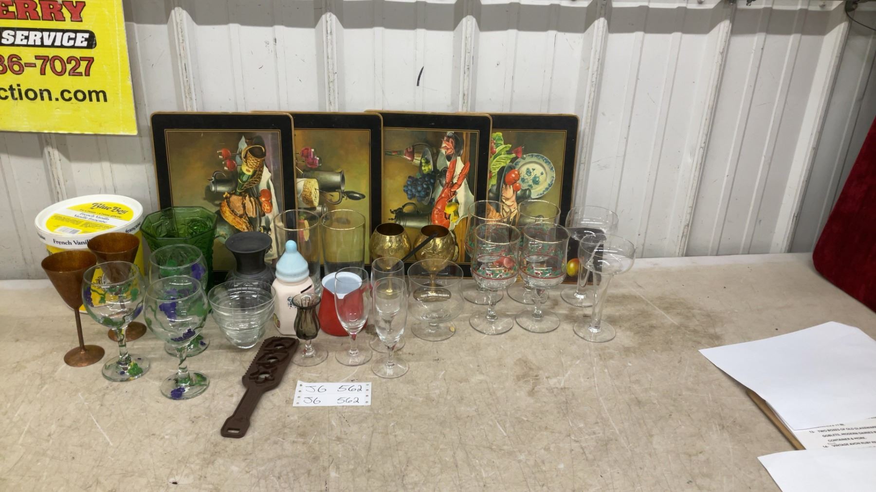 Vintage Glassware, Wine Glasses, Brass Goblets, Modern Dairies Blue Boy Ice-Cream Container and More