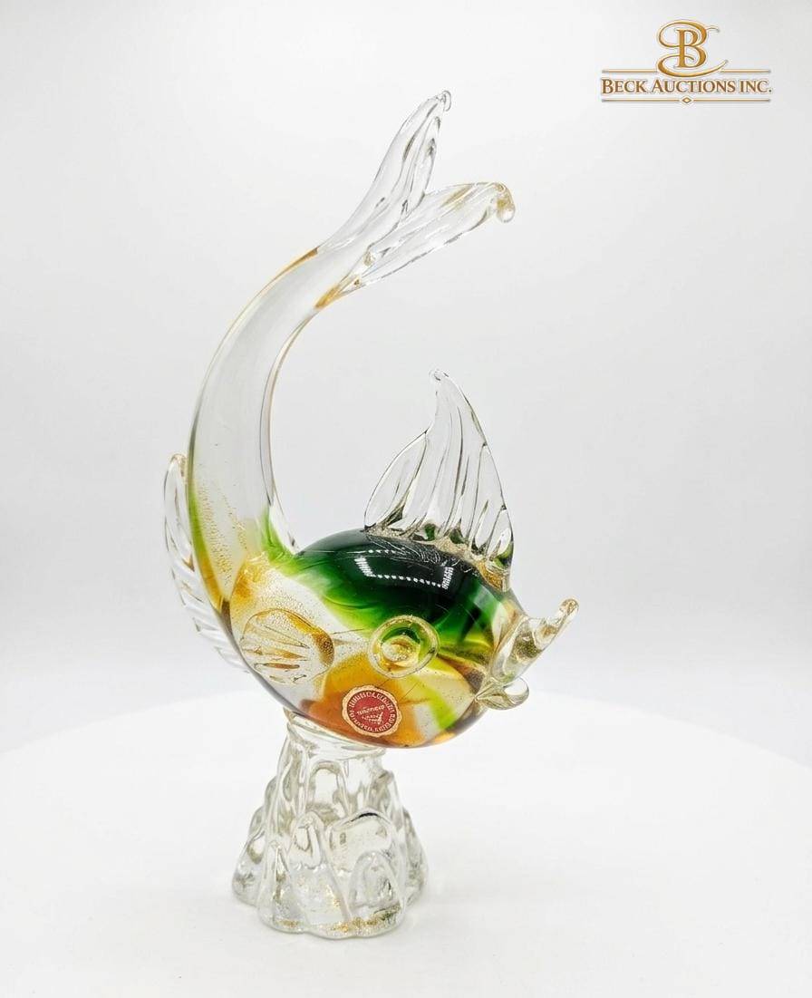 Lot 3 Murano Glass Fish Figurine on Textured Base, 11-Inch Height