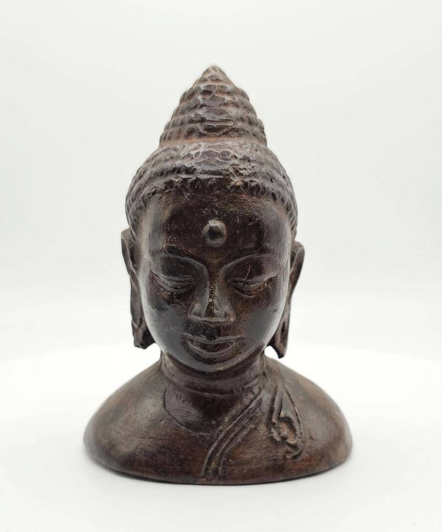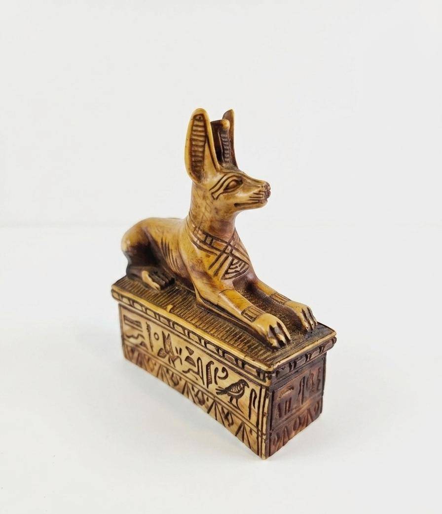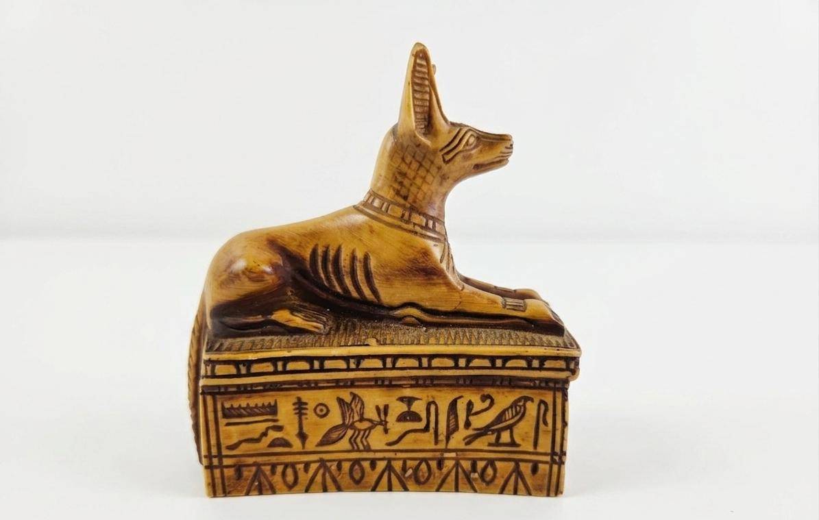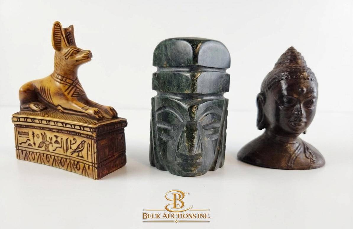 Lot 8 Three Decorative Figurines Featuring Anubis, Tribal Head, and Buddha