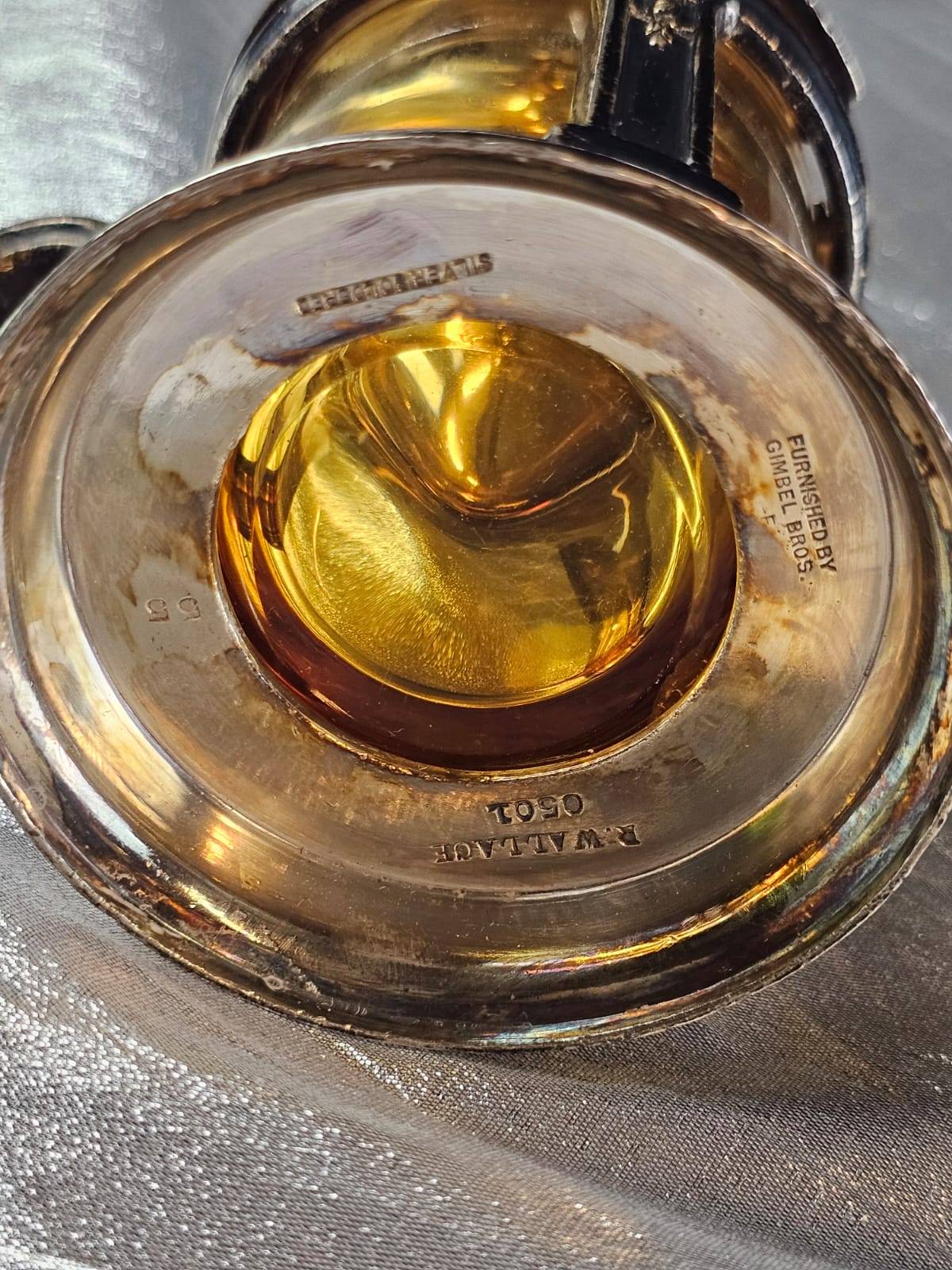 Lot 9 Silver-Toned Decorative Objects with Amber Glass Lidded Container