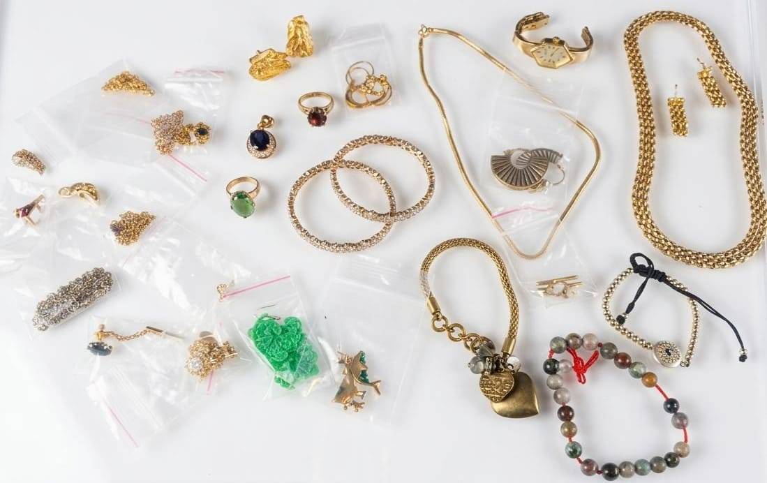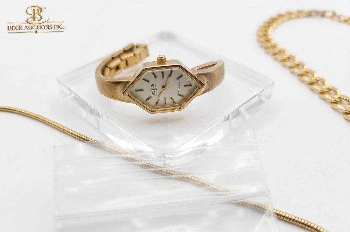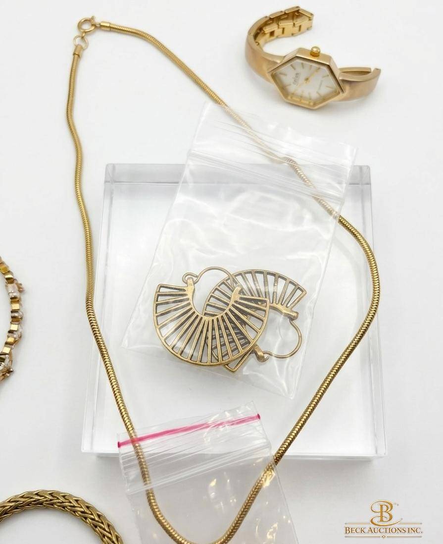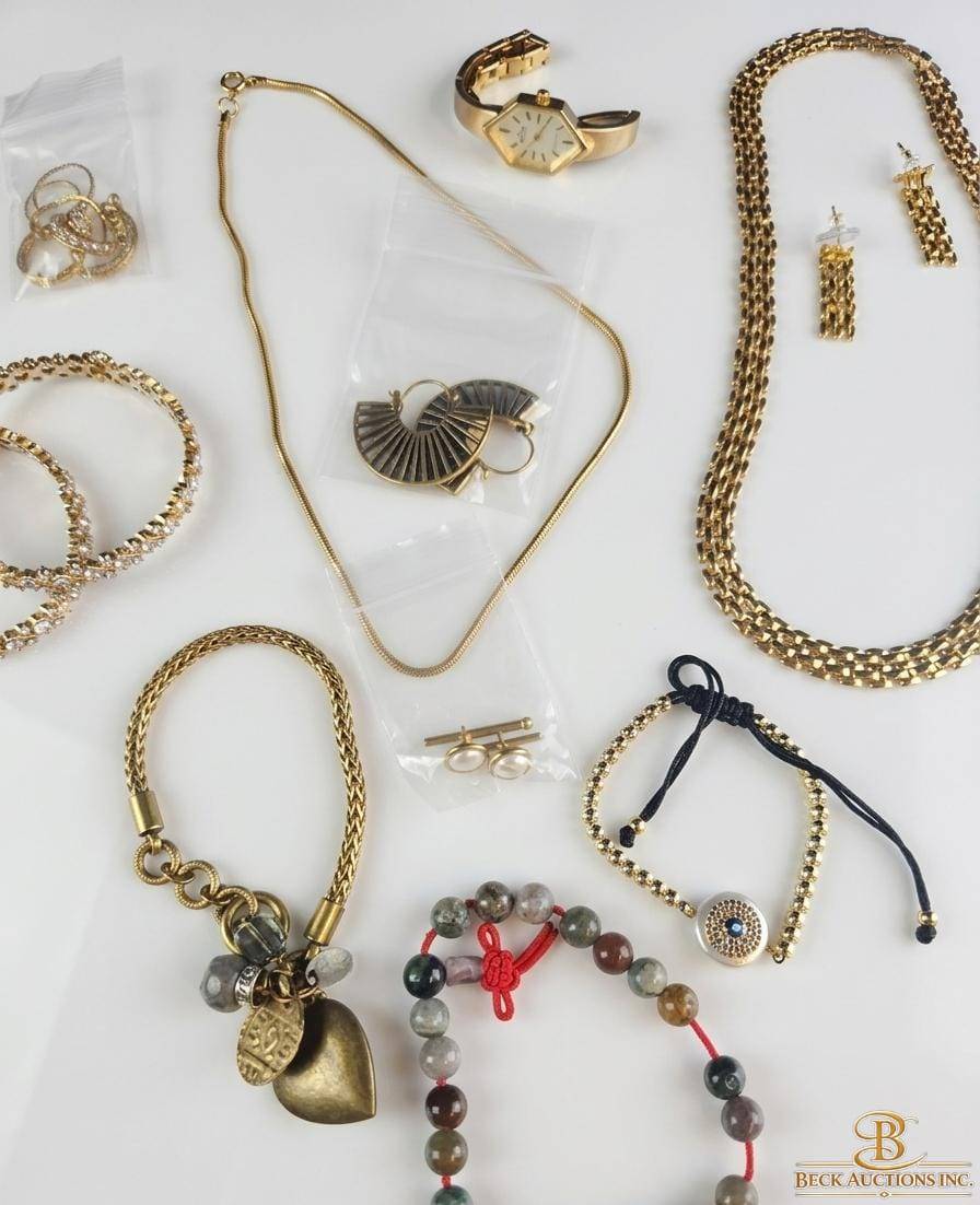 Lot 28 Gold-Tone Jewelry Lot With Bracelets, Necklaces, Earrings, and Watch