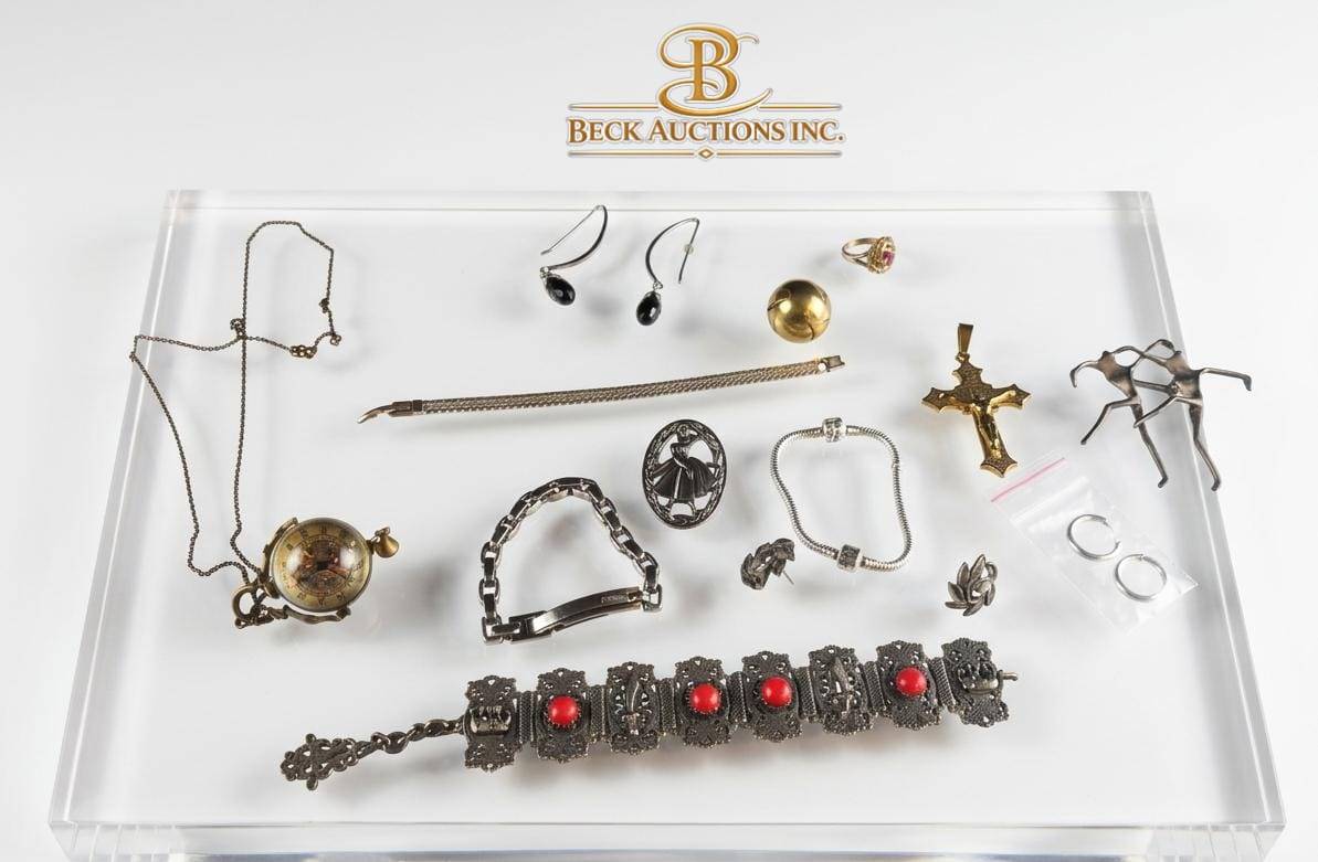 Lot 30 Jewelry Pieces Including Ornate Bracelet and Pocket Watch