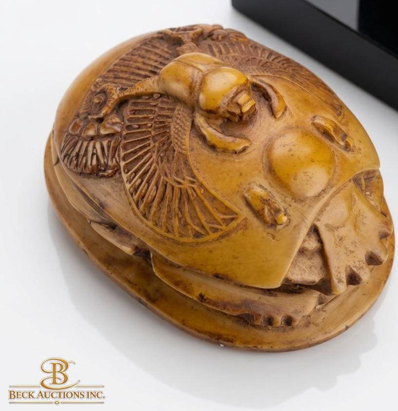 This unique set includes three distinct decorative pieces: a brass cannon (approximately 6.5 inches long, 3 inches wide, and 3 inches tall), a carved ox bone box featuring intricate animal designs (3 inches long, 2 inches wide, and 1.5 inches tall), and a black bust figurine (5 inches tall, base diameter of 2.5 inches). Each item showcases attention to craft and detail, perfect for adding character to a collection or display.