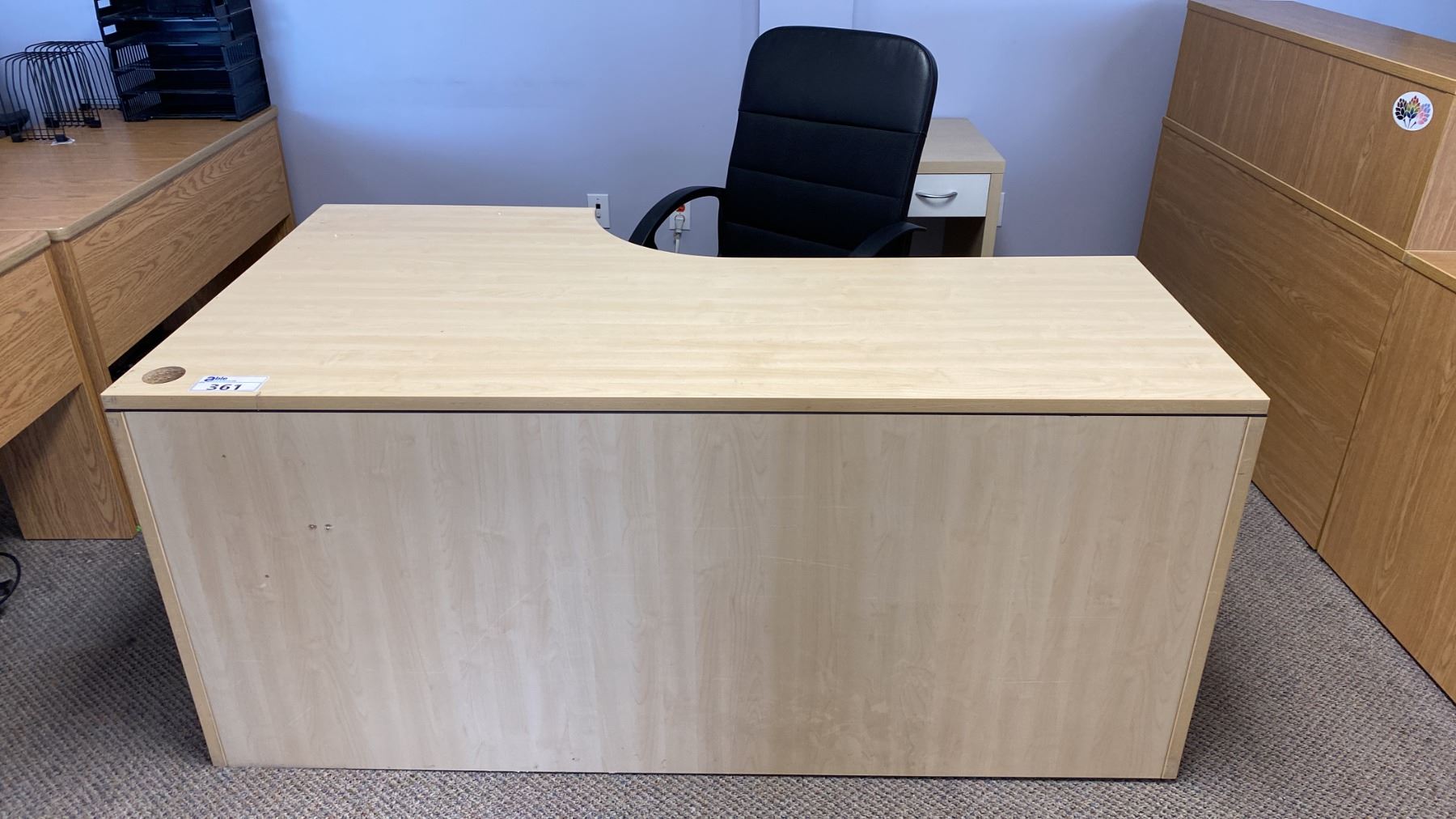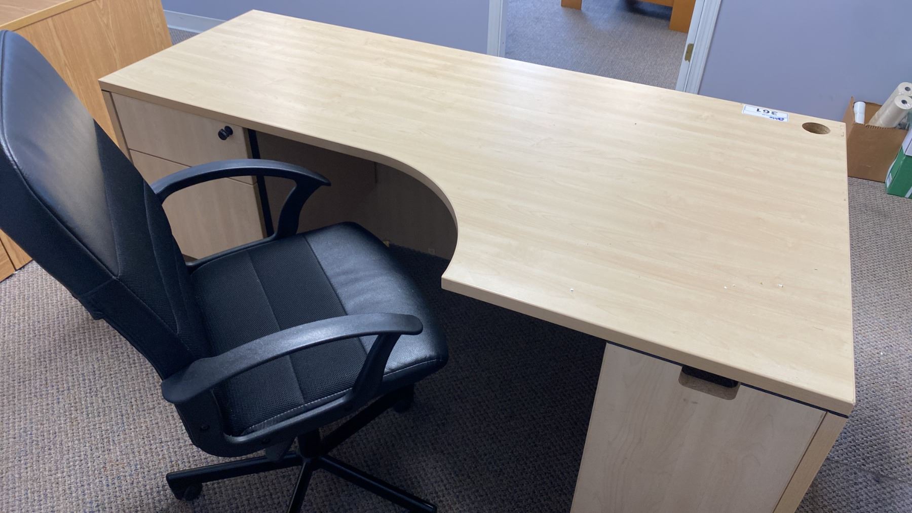 Lot 361 OFFICE DESK WITH SMALL MATCHING SINGLE DRAWER SIDE TABLE AND OFFICE CHAIR