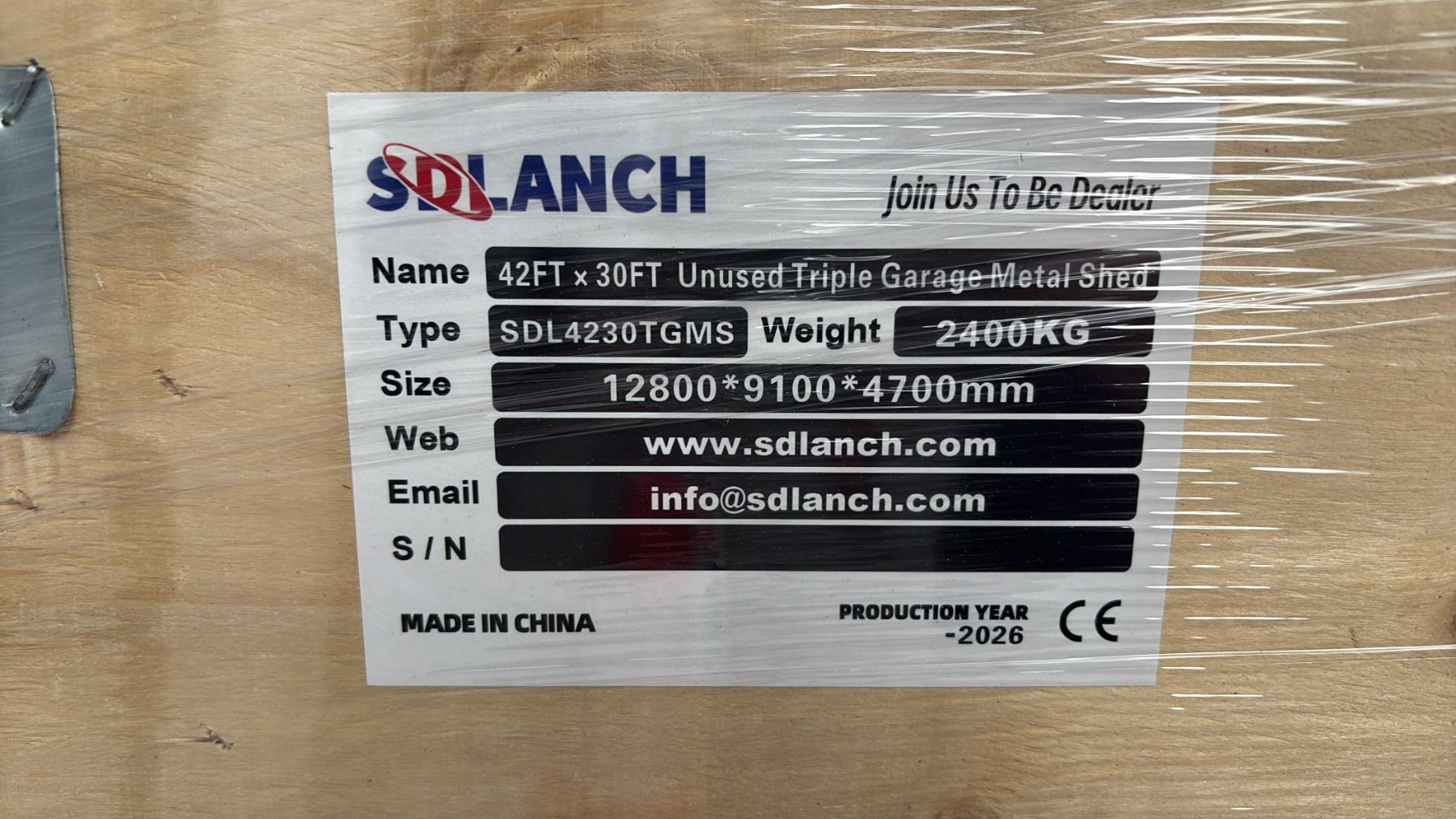 *NEW* SDLANCH SDL4230TGMS 42 FT X 30 FT UNUSED TRIPLE GARAGE METAL SHED - WINE RED (2 LARGE CRATES) APPROX 2400 KG