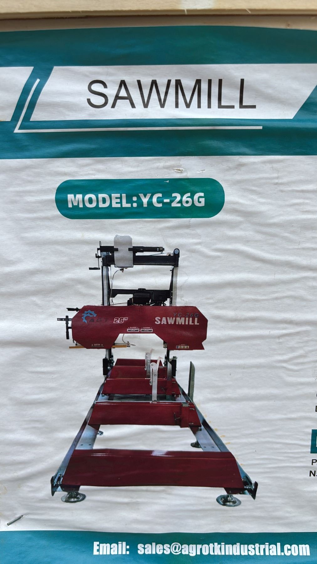 *NEW* AGT INDUSTRIAL YC-26G GAS POWERED SAWMILL - PACKAGE SIZE: 86.7" X 25.4" X 33.8" PACKAGE WEIGHT: 368 KG