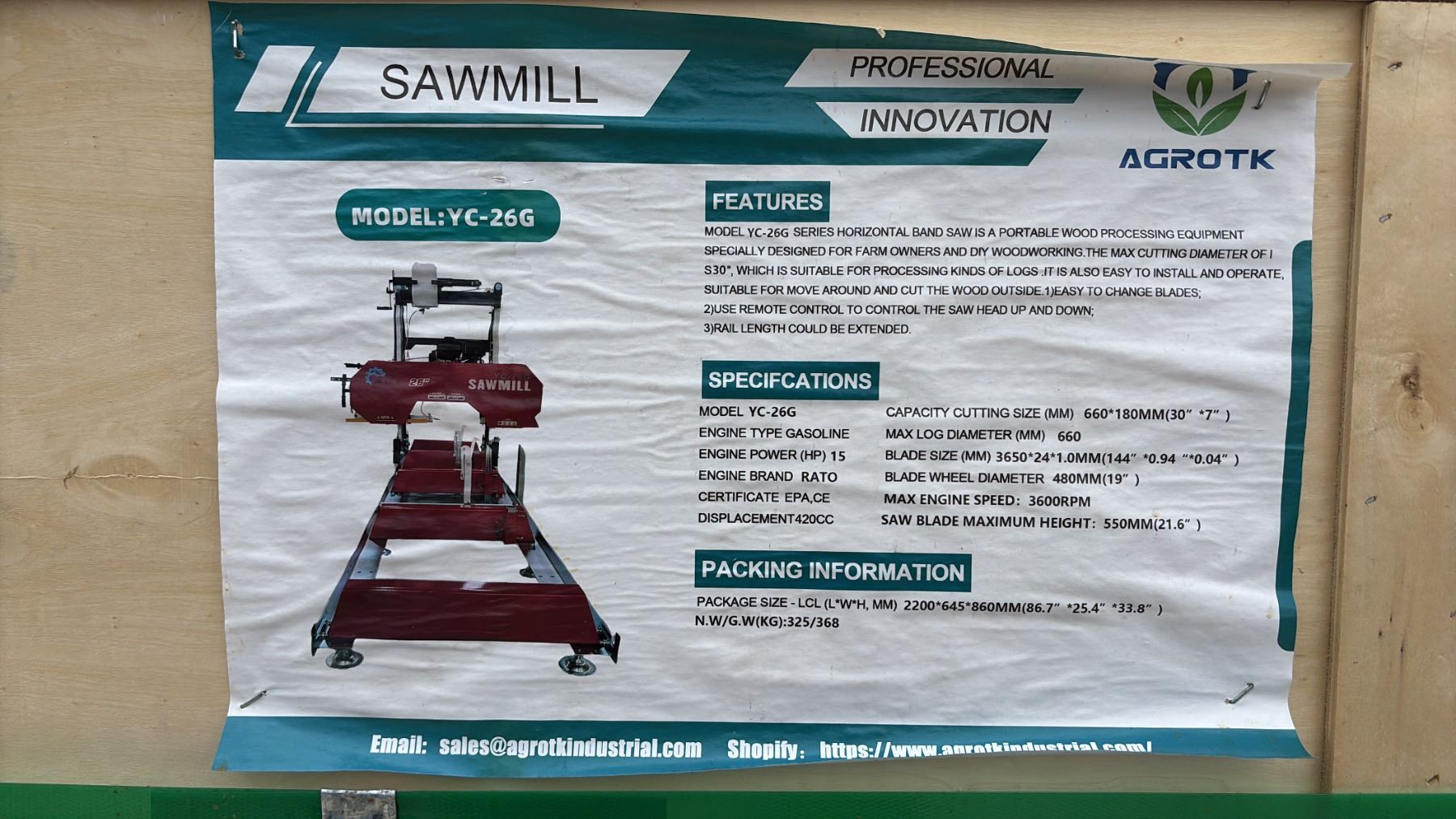 Lot 29 *NEW* AGT INDUSTRIAL YC-26G GAS POWERED SAWMILL -