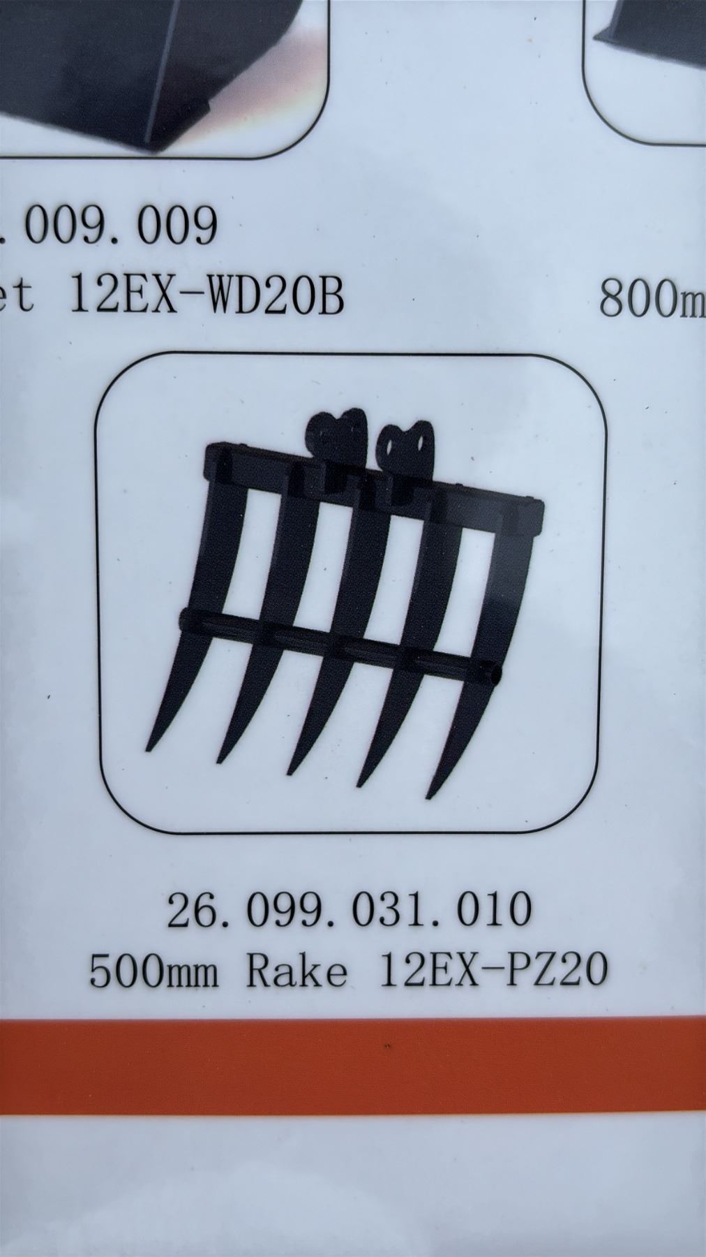 Lot 32 *NEW* AGT INDUSTRIAL MINI SKID STEER 500MM RAKE ATTACHMENT 12EX-PZ20