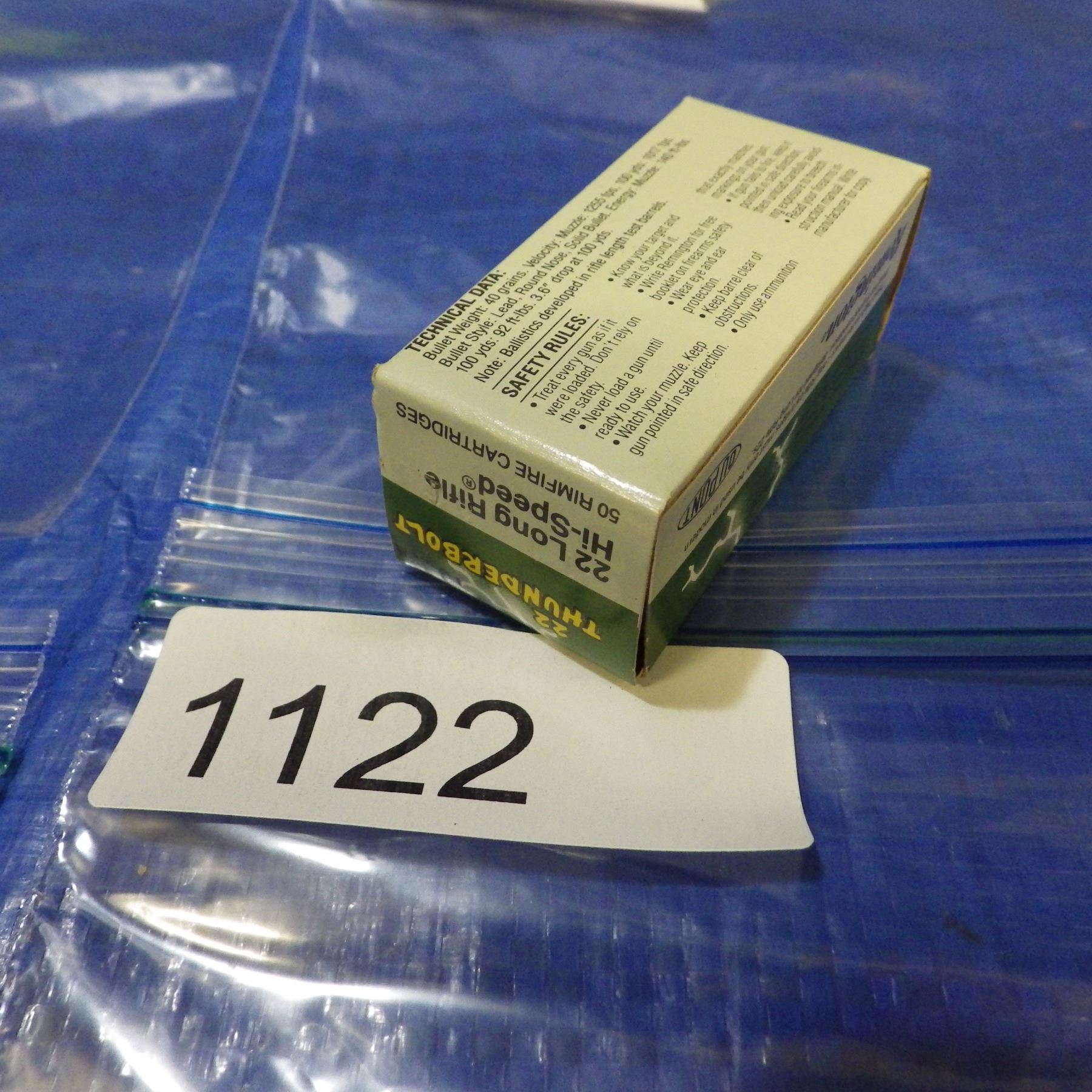 Lot 1122 COLLECTOR BOX OF .22 AMMO -- count and contents not confirmed.