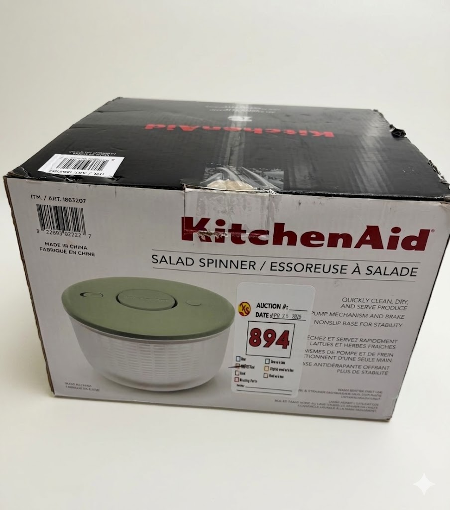 Lot 894 KITCHENAID UNIVERSAL SALAD SPINNER, 7.43 QUART, PISTACHIO -SU