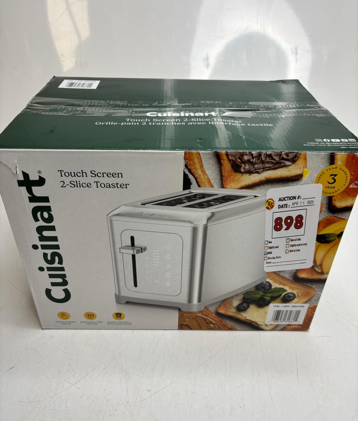 Lot 898 CUISINART 2 SLICE STAINLESS TOUCH SCREEN DIGITAL TOASTER -U