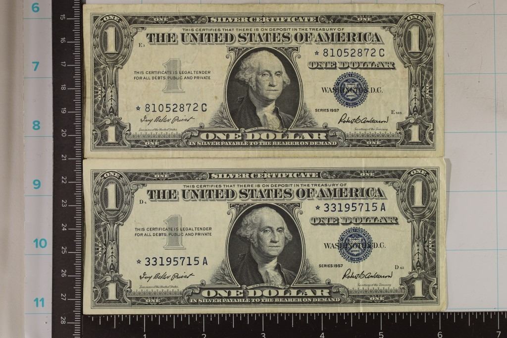 #2 Lot 2 2-1957 $1 SILVER CERTS STAR NOTES BLUE SEALS