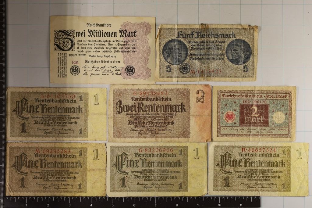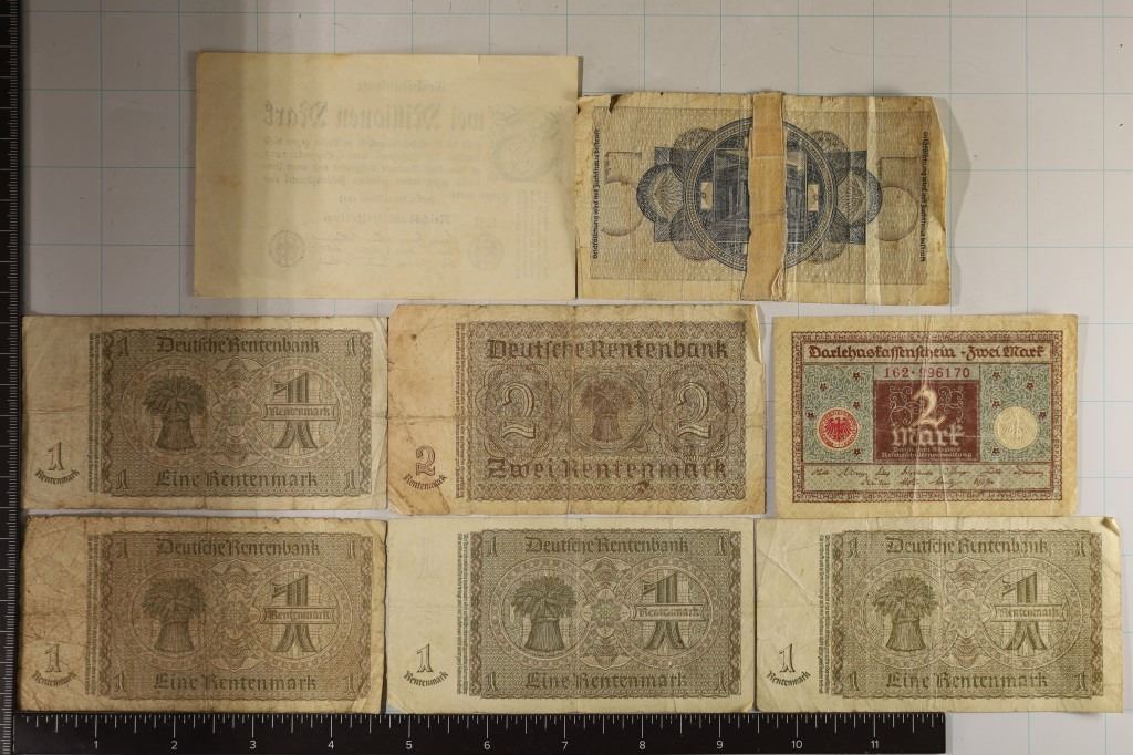1920-2 MARK, 1937-2 MARK, NO DATE MARK WITH TAPE ON THE REVERSE AND 1923 TWO MILLION MARK