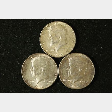 #16 Lot 16 3-40% SILVER JOHN F. KENNEDY HALVES: 1965, 1966