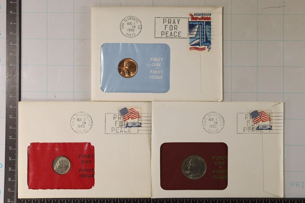 #99 Lot 99 3-US COIN UNC FDC'S: 1966 LINCOLN CENT, 1965