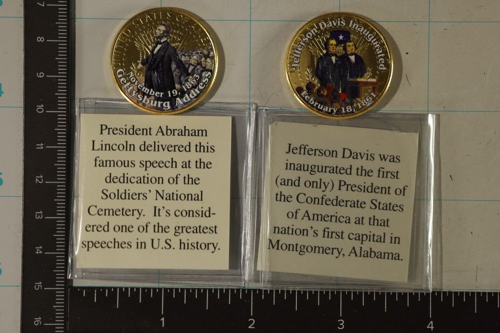 #121 Lot 121 2-GOLD PLATED UNC CIVIL WAR HALVES: JEFFERSON