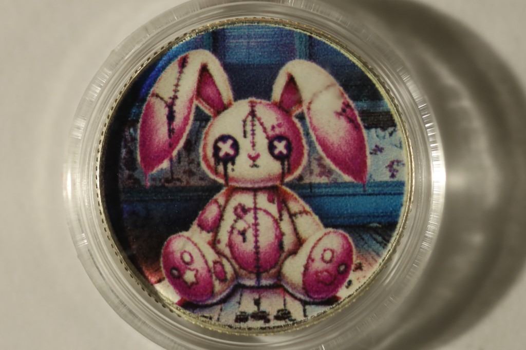 OBVERSE, STITCHED UP BUNNY, IN HARD PLASTIC CAPSULE