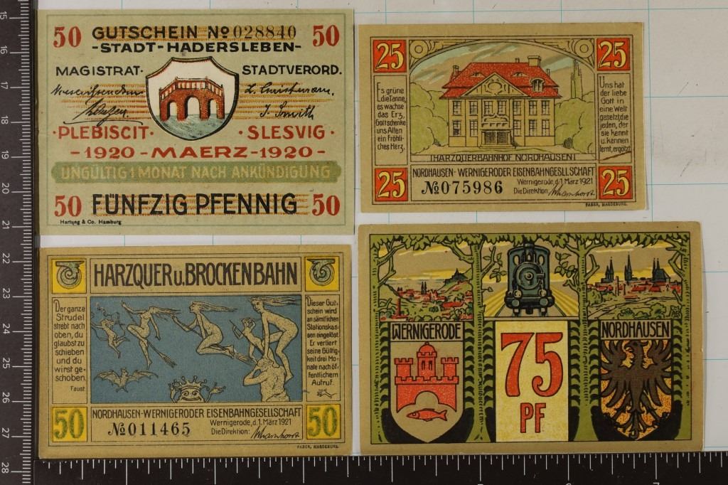 #128 Lot 128 4 GERMAN CRISP UNC NOTGELDS:1920-FIFTY PFENNING,