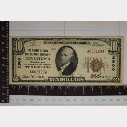 #136 Lot 136 1929 US $10 NATIONAL CURRENCY OF BOYERTOWN, PA