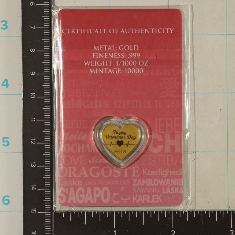 #145 Lot 145 .999 GOLD HAPPY VALENTINES DAY HEART MINTAGE OF