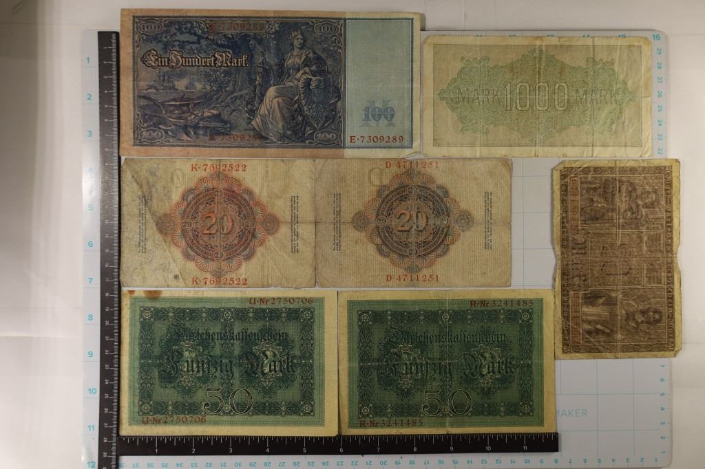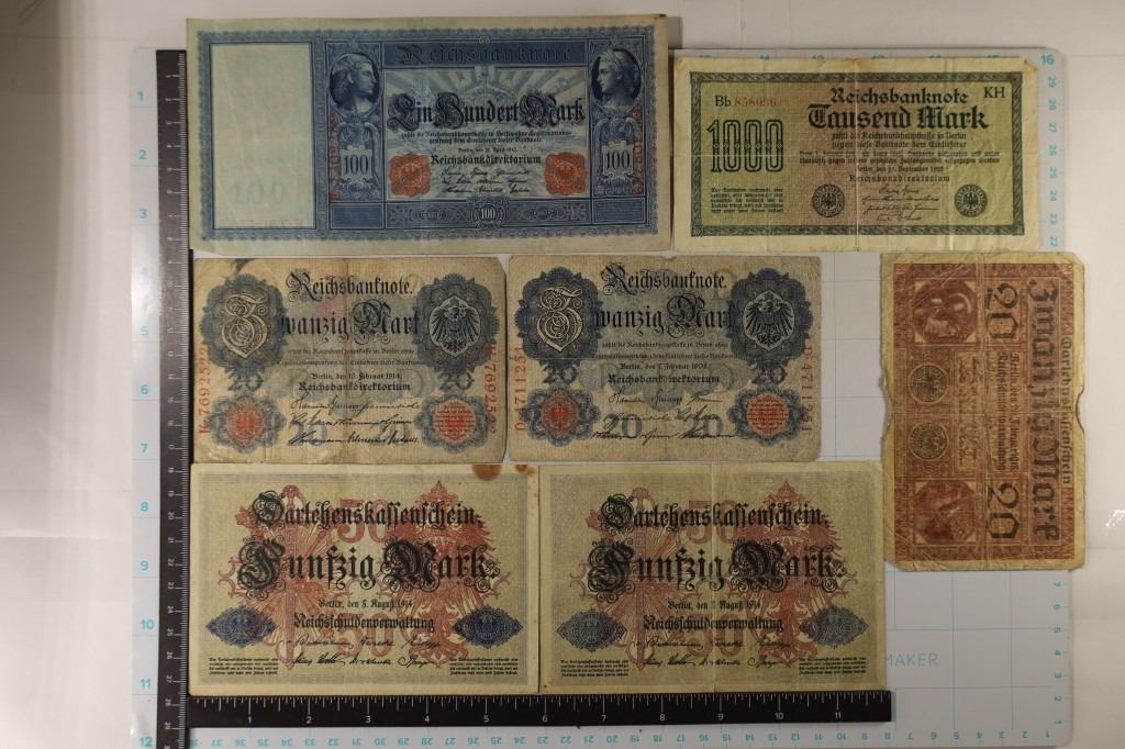 TWENTY MARK, 2-1914 FIFTY MARK, 1910 ONE HUNDRED MARK & 1922 ONE THOUSAND MARK